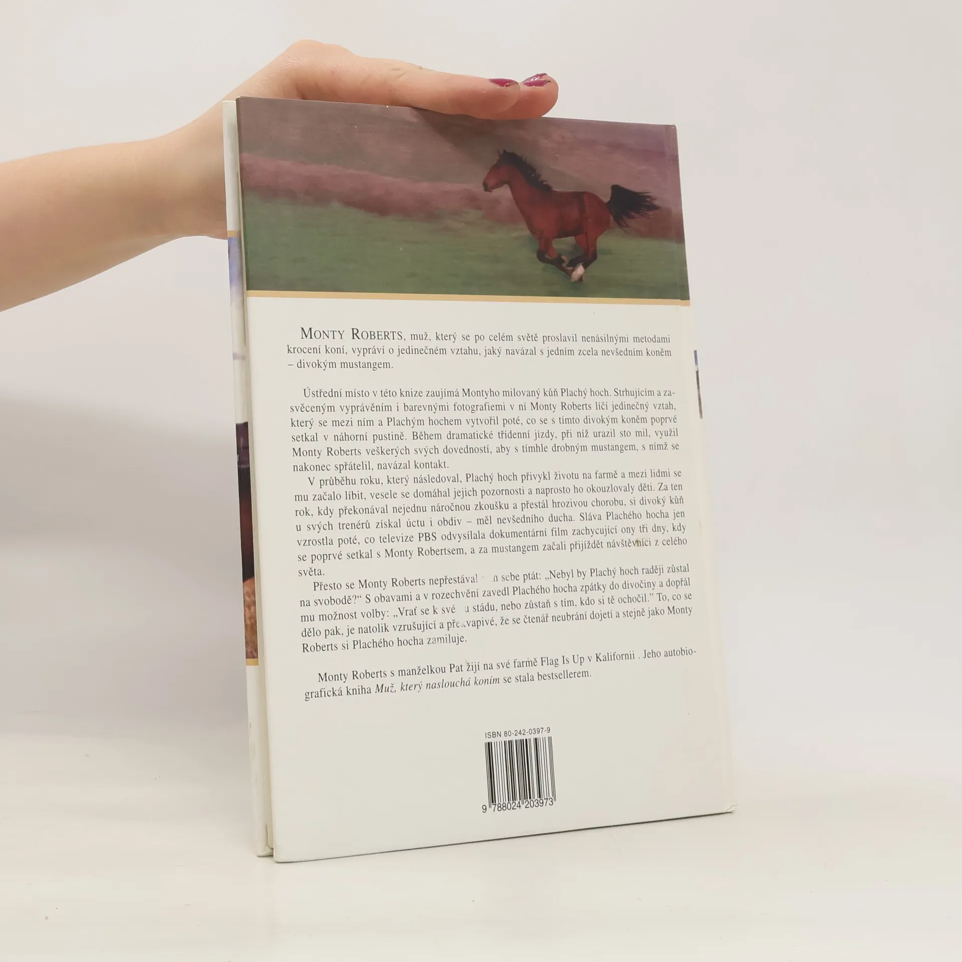 Monty Roberts - autor této knihy, muž, který se po celém světě proslavil nenásilnými metodami krocení koní, vypráví o jedinečném vztahu, jaký navázal s jedním zcela nevšedním koněm - divokým mustangem. Ústřední místo v této knize zaujímá Montyho milovaný kůň Plachý hoch. Strhujícím a zasvěceným vyprávěním i barevnými fotografiemi v ní Monty Robert líčí jedinečný vztah, který se mezi ním a Plachým hochem vytvořil poté, co se s tímto divokým koněm poprvé setkal v náhorní pustině. Během dramatické třídenní jízdy, při níž urazil sto mil, využil Monty Roberts veškerých svých dovedností, aby s tímhle drobným mustangem, s nímž se nakonec spřátelil, navázal kontakt...... celý text