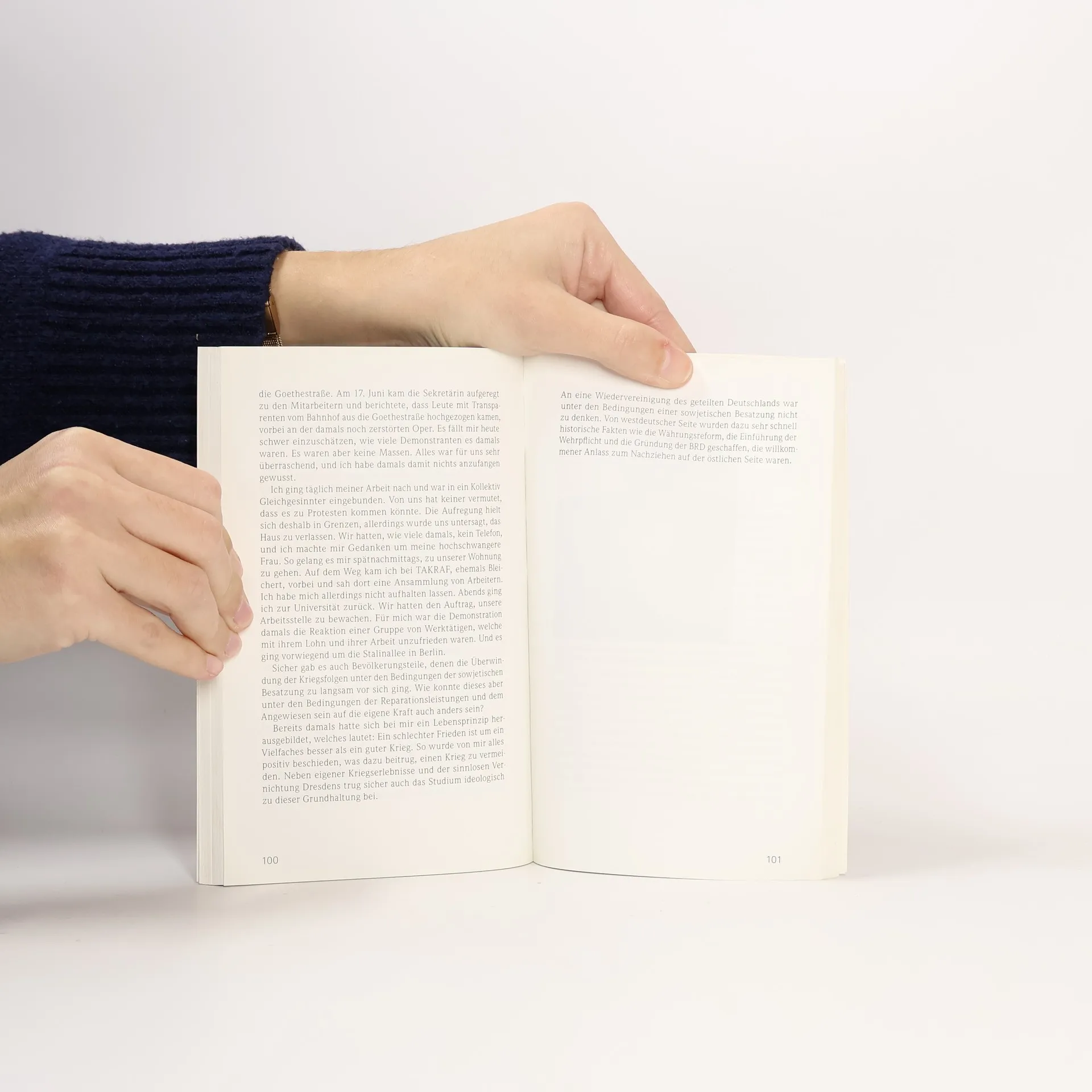 „So einfach konnte ein Problem nicht zu lösen, eine Diktatur nicht zu beseitigen sein. Trotzdem hatte mich diese Stimmung gepackt, auch weil die Leute an ihre Kraft glaubten.“ – Mit diesen Sätzen beschreibt der in Bitterfeld aufgewachsene Plakatkünstler Professor Klaus Staeck das Spannungsfeld des 17. Junis. Arbeiteraufstand, Volksbegehren, Revolte oder Putsch waren Begriffe, unter denen man zu erfassen suchte, was an jenem Mittwoch im Juni 1953 in der DDR geschah. Das Freiheitsstreben unzähliger Menschen wurde mit der brutaler Gewalt beantwortet: sowjetische Panzer und niederknüppelnde Polizei gegen das eigene Volk. – So verschieden die Zeitzeugen sind, die zu Wort kommen, so differenziert und facettenreich ist auch die Darstellung der Ereignisse. Sowohl Schauspieler und Künstler als auch Wissenschaftler, Theologen, Arbeiter und Angestellte berichten in Interviews über ihre Beobachtungen, ihre Haltungen, ihre Konflikte und Irrtümer. Entstanden ist eine spannende Mischung aus Subjektivität und Zeitgeschichte, die fünfzig Jahre nach dem 17. Juni 1953 die Ereignisse in einem neuen Licht erscheinen lässt.