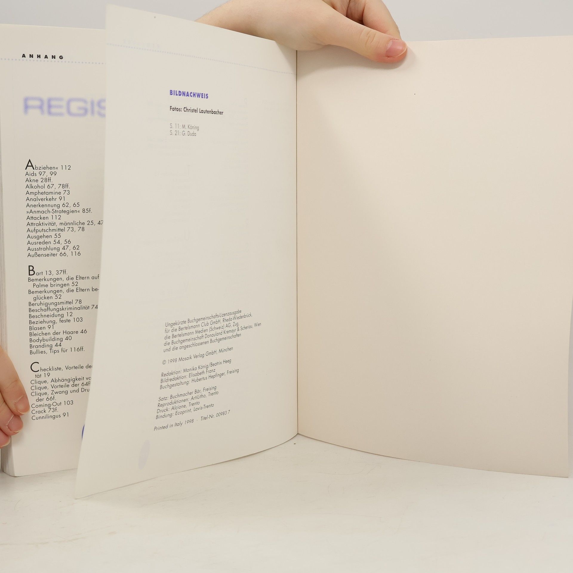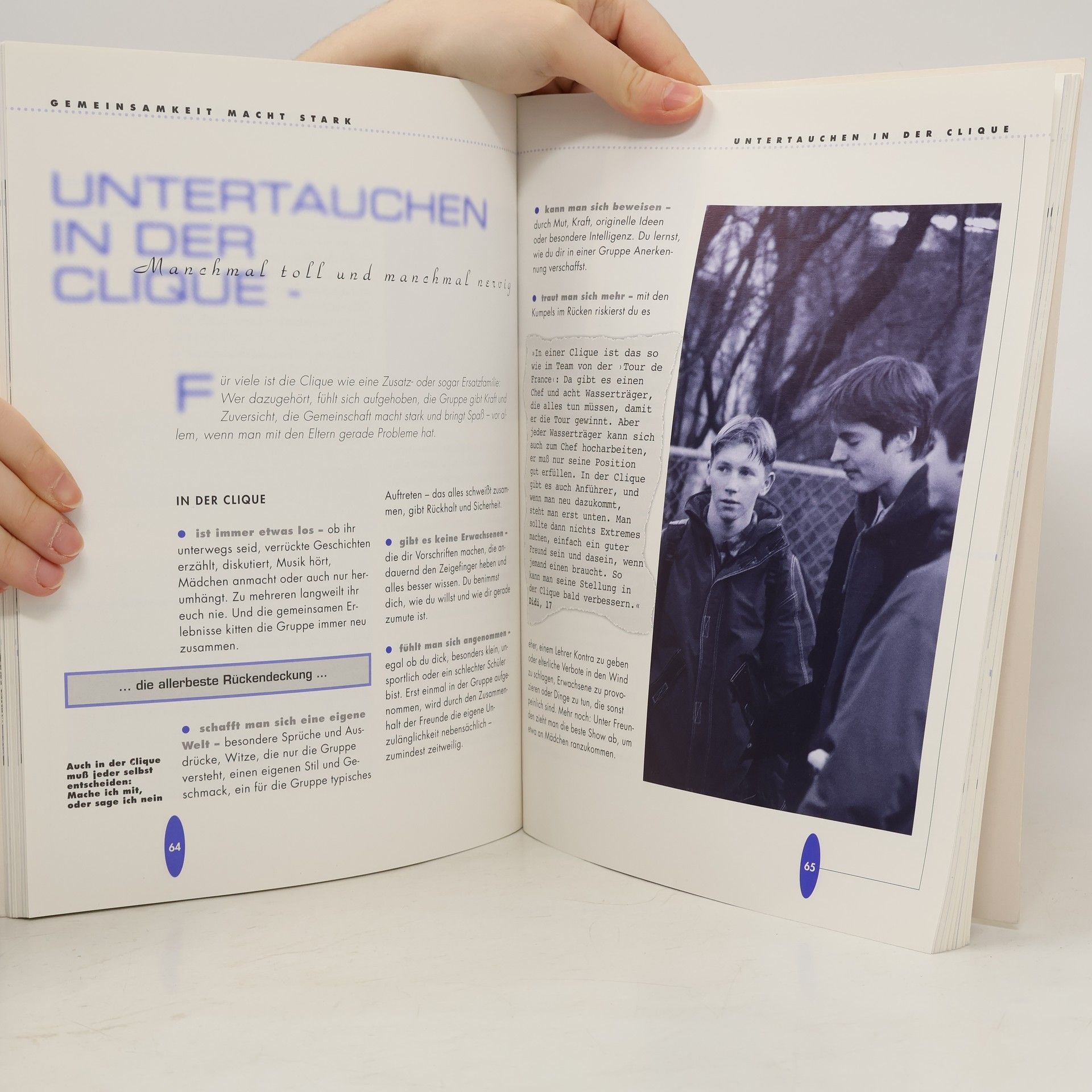 Sachlich locker wird hier eine Mischung aus Information, Ratschlägen und Selbstaussagen von 12- bis 18jährigen sowie durch Promi-Statements (F. Beckenbauer, M. Schanze, Jan Ullrich) vermittelt.