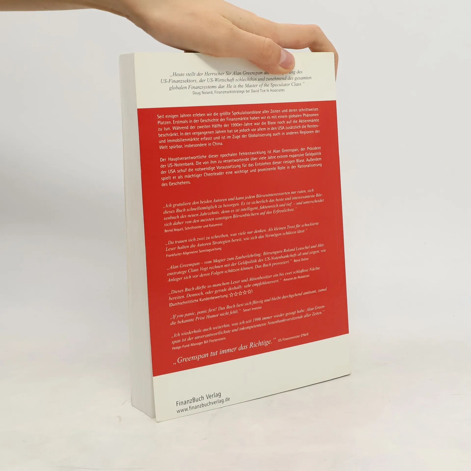 „Der Erfolg hat viele Väter - der Misserfolg nur einen“, heißt es im Volksmund. So ist es auch an der Börse. Wenn es um den Verantwortlichen des momentan größten Aktiencrash seit 1929 geht, fällt immer häufiger ein Name: Alan Greenspan. Der amerikanische Notenbankchef, einst als Magier der Märkte gefeiert, wird nun als Zauberlehrling gesehen, dem die Situation längst entglitten ist. „In den Geschichtsbüchern wird der heutige Börsencrash dereinst mit dem Namen Alan Greenspan eng verbunden sein“, schreibt Roland Leuschel in seinem neuen Buch. „Seine Geldpolitik hat komplett versagt und die Märkte in die jetzige Situation erst gebracht.“ Der konkrete Vorwurf des Autors: Erst habe Greenspan durch die niedrigen Zinsen die größte Spekulationsblase aller Zeiten ermöglicht. Nach dem Einbruch der Märkte habe er die monetären Zügel zu spät gelockert. Leuschel lässt nicht gelten, dass Greenspan auf Grund diverser Krisen in Asien oder Russland beziehungsweise der Jahr-2000-Umstellung quasi zu rapiden Zinssenkungen gezwungen gewesen war. Der Fed-Chef sei zu einem der enthusiastischsten New-Economy-Cheerleader geworden und habe dabei die Spekulationsblase komplett ignoriert. „Jetzt stellt sich heraus, dass das amerikanische Wirtschaftswunder nur eine von der Notenbank finanzierte Fiktion war. Die Nachwehen sind umso schlimmer.“