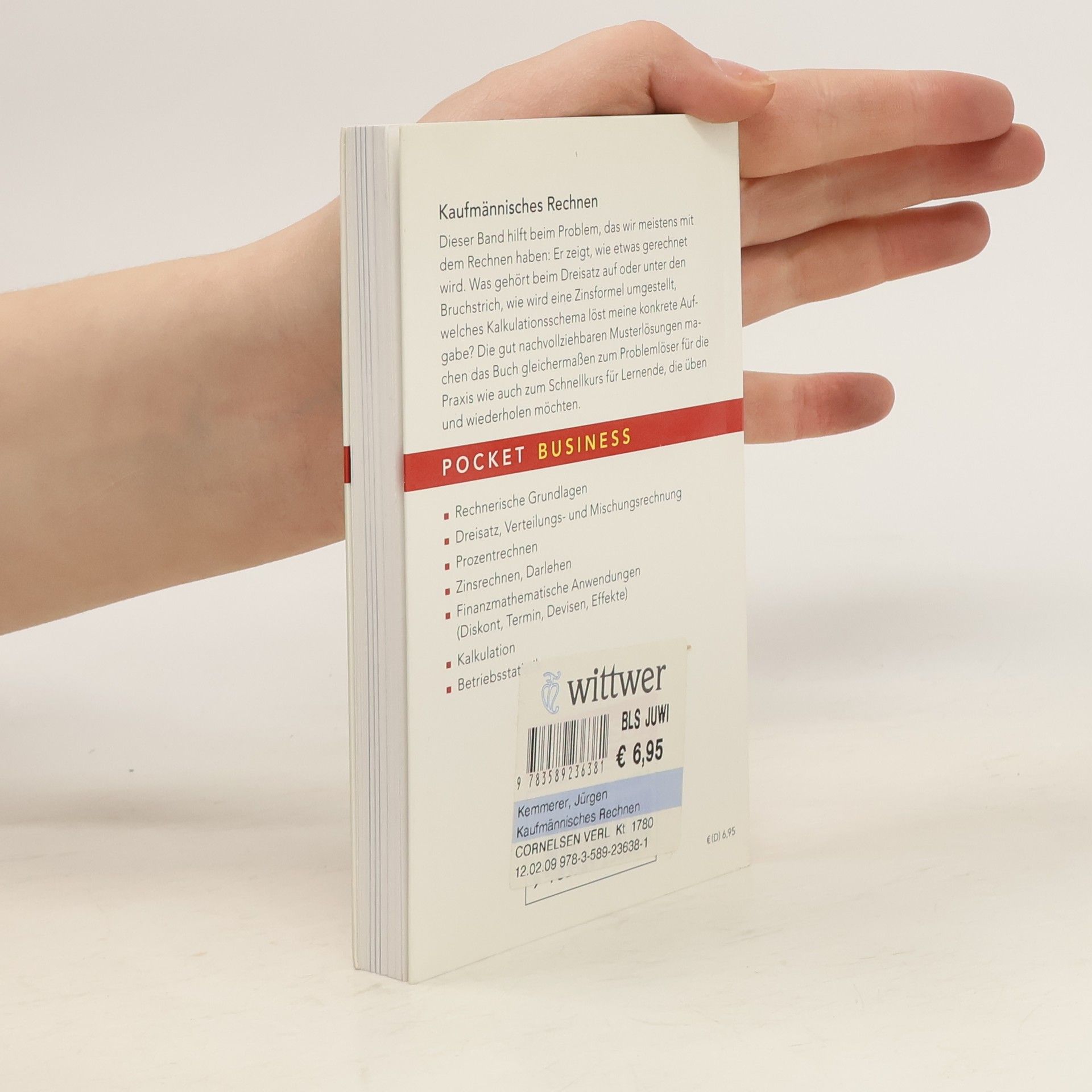 Top im Job Ob in der Ausbildung oder schon am Beginn einer Karriere: Die Bände von Pocket Business greifen auf, was an methodischen und sozialen Kompetenzen aktuell in der Praxis benötigt wird und stellen diese kompakt, anschaulich und praxisnah dar. Format: 10 cm x 16 cm Zum Nachschlagen bei Zweifelsfällen: * Für die Aus- und Fortbildung * Für die Praxis am Arbeitsplatz * Für die Wiederholung vor Klausuren und Prüfungen Formeln und Regeln werden übersichtlich bereitgehalten und die Rechenverfahren an Beispielen vorgeführt. Enthalten sind Grundlagen (Dreisatz, Prozent- und Zinsrechnung) sowie typische Anwendungen komplexerer Art.