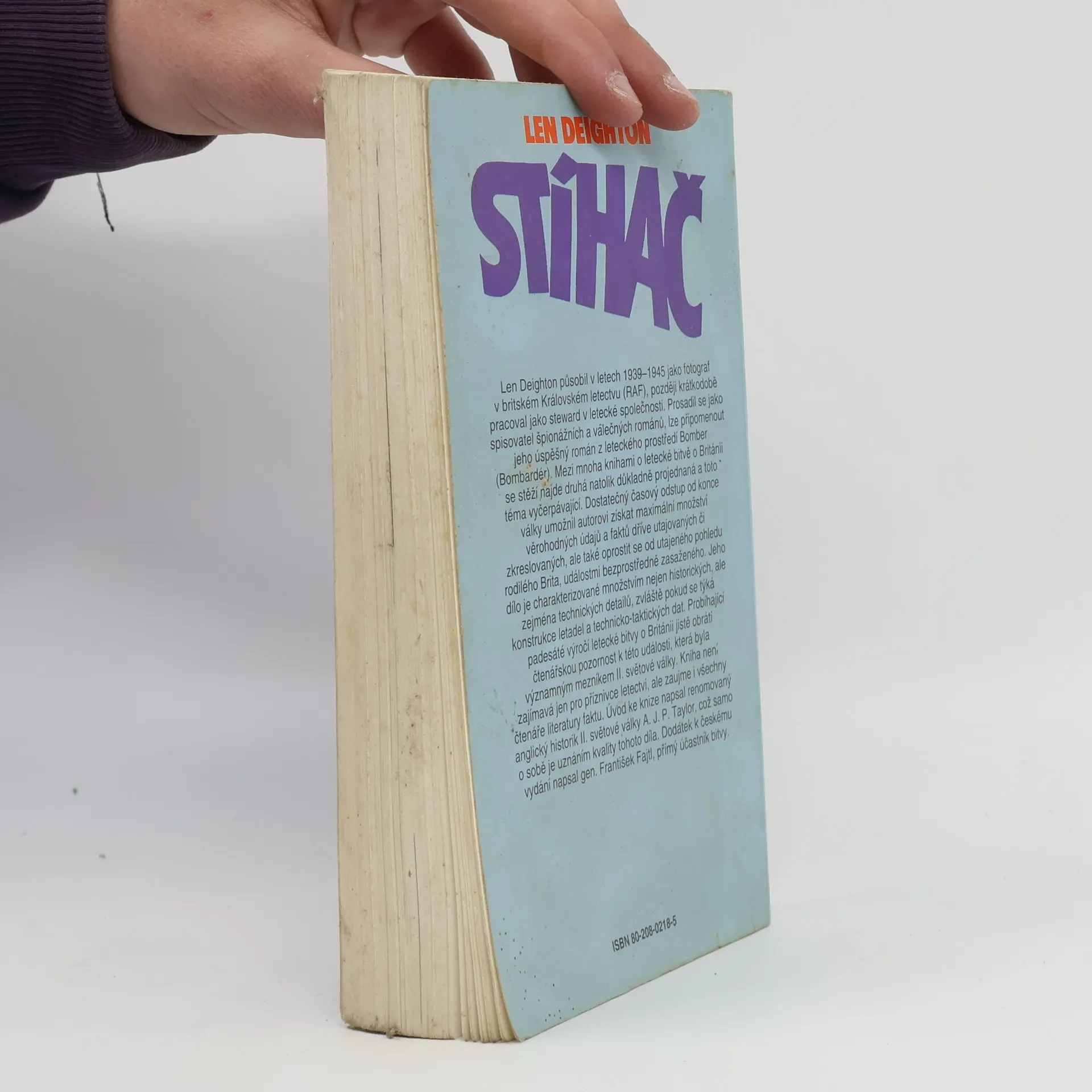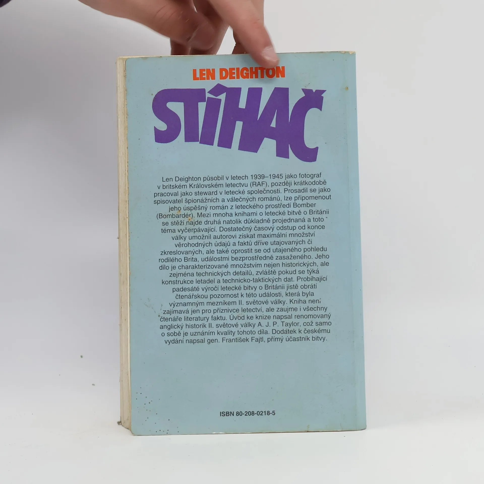Bitva o Británii – jak to skutečně bylo. Len Deighton působil v letech 1939–1945 jako fotograf v britském Královském letectvu (RAF), později krátkodobě pracoval jako steward v letecké společnosti. Prosadil se jako spisovatel špionážních a válečných románů, lze připomenout jeho úspěšný román z leteckého prostředí Bomber (Bombardér). Mezi mnoha knihami o letecké bitvě o Británii se stěží najde druhá natolik důkladně projednaná a toto téma vyčerpávající. Dostatečný časový odstup od konce války umožnil autorovi získat maximální množství věrohodných údajů a faktů dříve utajovaných či zkreslovaných, ale také oprostit se od utajeného pohledu rodilého Brita, událostmi bezprostředně zasaženého. Jeho dílo je charakterizované množstvím nejen historických, ale zejména technických detailů, zvláště pokud se týká konstrukce letadel a technicko-taktických dat. Probíhající padesáté výročí letecké bitvy o Británii jistě obrátí čtenářskou pozornost k této události, která byla významným mezníkem II. světové války. Kniha není zajímavá jen pro příznivce letectví, ale zaujme i všechny čtenáře literatury faktu. Úvod ke knize napsal renomovaný anglický historik II. světové války A. J. P. Taylor, což samo o sobě je uznáním kvality tohoto díla. Dodatek k českému vydání napsal gen. František Fajtl, přímý účastník bitvy.