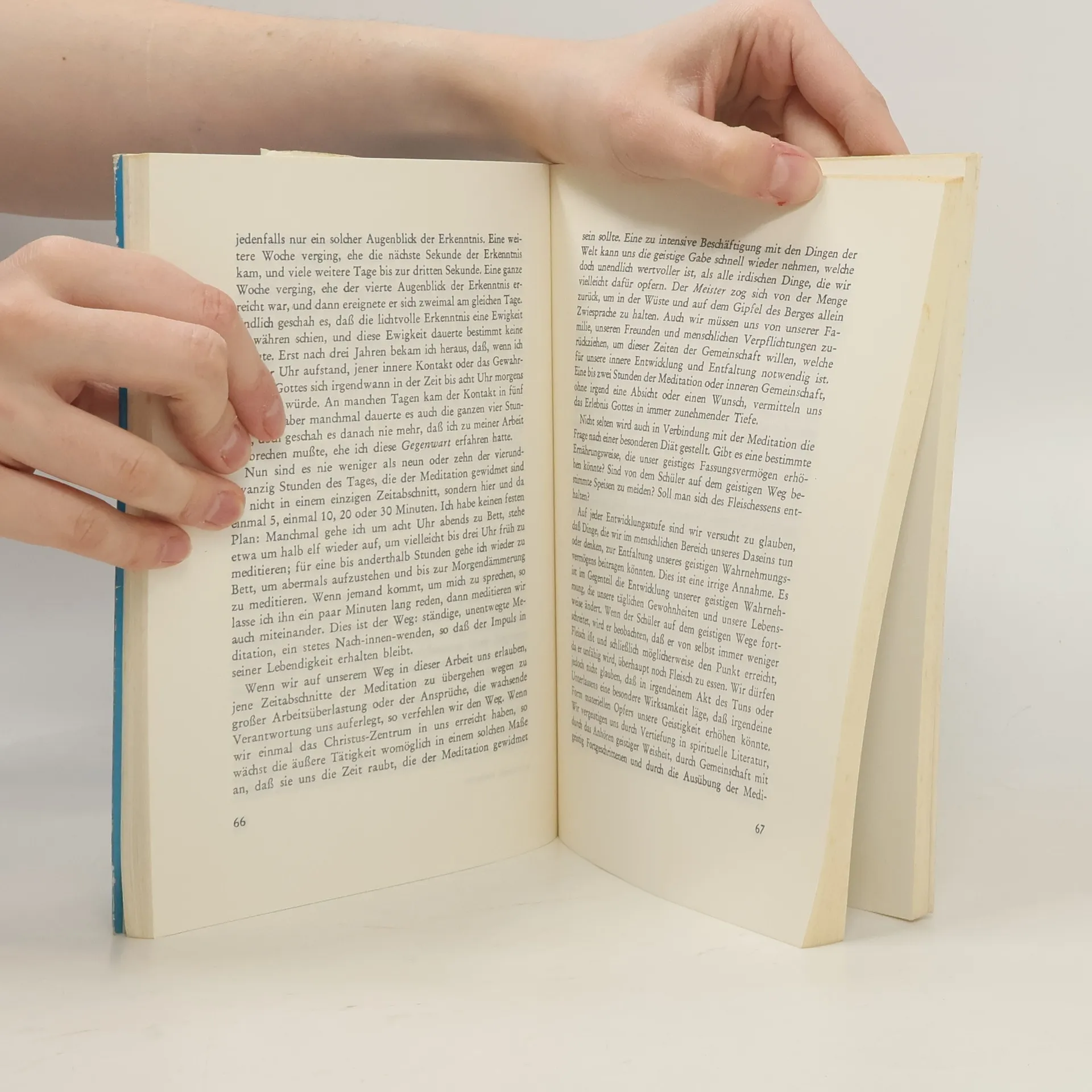 Meditation ist keine Anstrengung des Geistes, sondern eine Entspannung. Es ist kein Versuch, Gott zu erreichen, da Gott immer gegenwärtig ist. Stattdessen sollten wir still und ruhig sein, um uns von Gott durchdringen zu lassen. Nur eine Minute innerer Ruhe genügt, um unsere Meditation zu vervollkommnen. Wichtig ist, dass wir uns auf das Eintreten Gottes in unser Bewusstsein vorbereiten. Wir wissen nie, wann Gott zu uns spricht, aber durch das Leben in der Meditation stehen wir unter seiner Herrschaft, was bedeutet, dass Gott uns jederzeit erreichen kann. Dieses Werk hilft uns, unsere Einheit mit Gott zu erkennen und zu verwirklichen, wodurch wir mehr Klarheit über uns selbst und die Welt gewinnen. Wo ein verwirklichtes Gottesbewusstsein existiert, wird es zum Werkzeug, durch das Gott in das menschliche Bewusstsein wirkt. Das Christus-Wirken berührt und erleuchtet andere, heilt und versorgt sie. Indem wir uns durch Meditation auf das Unendliche einstimmen, öffnet sich auch Christus einen Weg durch unser Bewusstsein. Ein globaler Kreis von geistiger Wahrheit wird durch das verwirklichte Christus-Bewusstsein von Lehrern und Schülern gebildet. Wenn dieser Kreis sich entfaltet, wird es jedem möglich sein, mit erleuchteten Seelen in Kontakt zu treten. Eine geistige Erhebung wird die Welt erfassen, nicht nur Einzelne, sondern Millionen, und diese Verwirklichung wird über Zeit und Raum hinauswirken.
