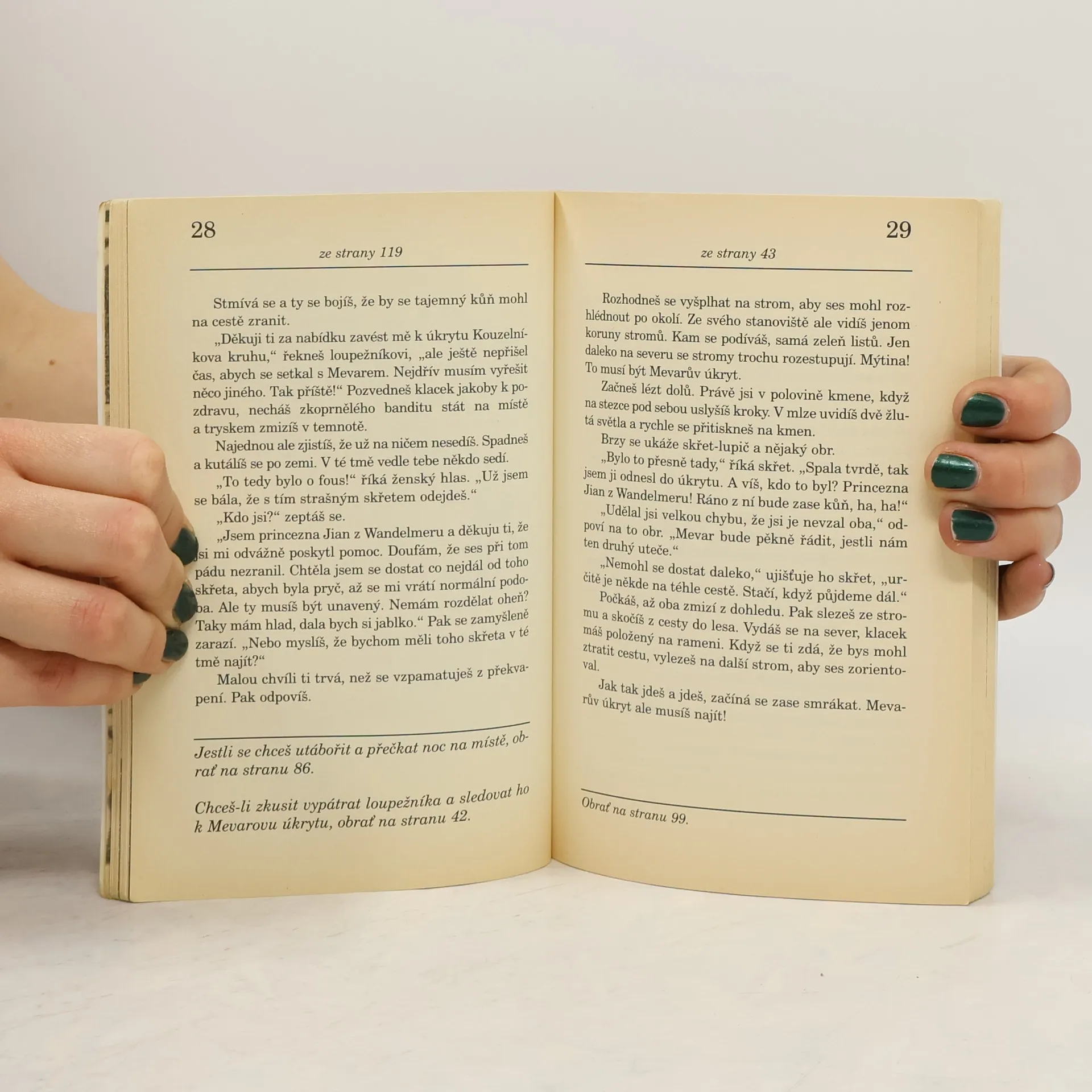 Zlý kouzelník začaroval celé království... Jediný, kdo může obyvatele Wandelmere zachránit, jsi ty, trubadúr Robin. Víš jenom to, že kouzelníkova moc vychází z prstenu... Ale nemusí to být prsten na ruku, možná je to jenom nějaký kroužek... Najednou do tebe strká podivný kůň. A stará čarodějnice zase chce, abys šel do její chatrče. Jestli vsedneš na koně a odjedeš s ním, obrať na stranu 36. Pokud se rozhodneš jít za čarodějnicí, obrať na stranu 53. Když se vzdáš za kouzelníkem sám, obrať na stranu 22. Když uděláš chybné rozhodnutí, můžeš ztratit svůj život. Když půjdeš po správné cestě, bude z tebe hrdina. Vždycky se ale můžeš vrátit na začátek a vydat se jiným směrem. V Zapomenutém lese je mnoho cest. A volba je vždycky na tobě.