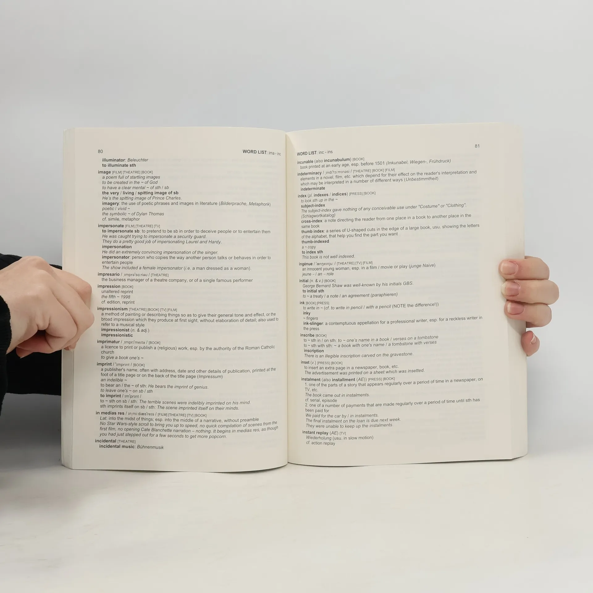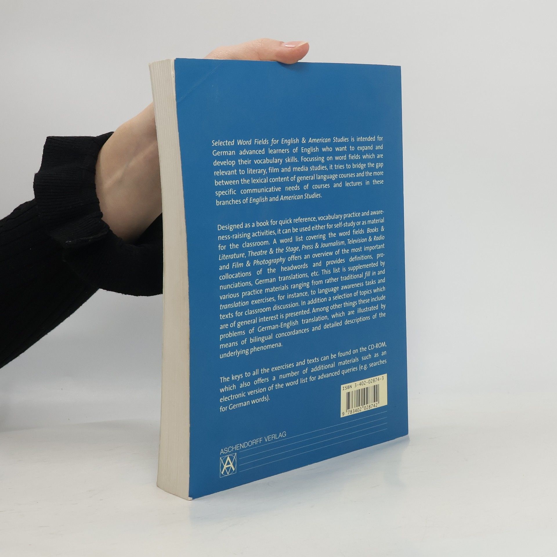 Selected Word Fields for English & American Studies is designed for advanced German learners of English aiming to enhance their vocabulary skills. It focuses on relevant word fields in literary, film, and media studies, bridging the gap between general language courses and the specific needs of English and American Studies. This reference book serves for quick access, vocabulary practice, and awareness activities, suitable for both self-study and classroom use. The word list encompasses key areas such as Books & Literature, Theatre & the Stage, Press & Journalism, Television & Radio, and Film & Photography, providing essential collocations, definitions, pronunciations, and German translations. Accompanying practice materials include traditional exercises like fill-in-the-blanks and translations, as well as language awareness tasks and discussion texts. Additionally, it addresses general interest topics, including challenges in German-English translation, illustrated through bilingual concordances and detailed explanations of relevant phenomena.