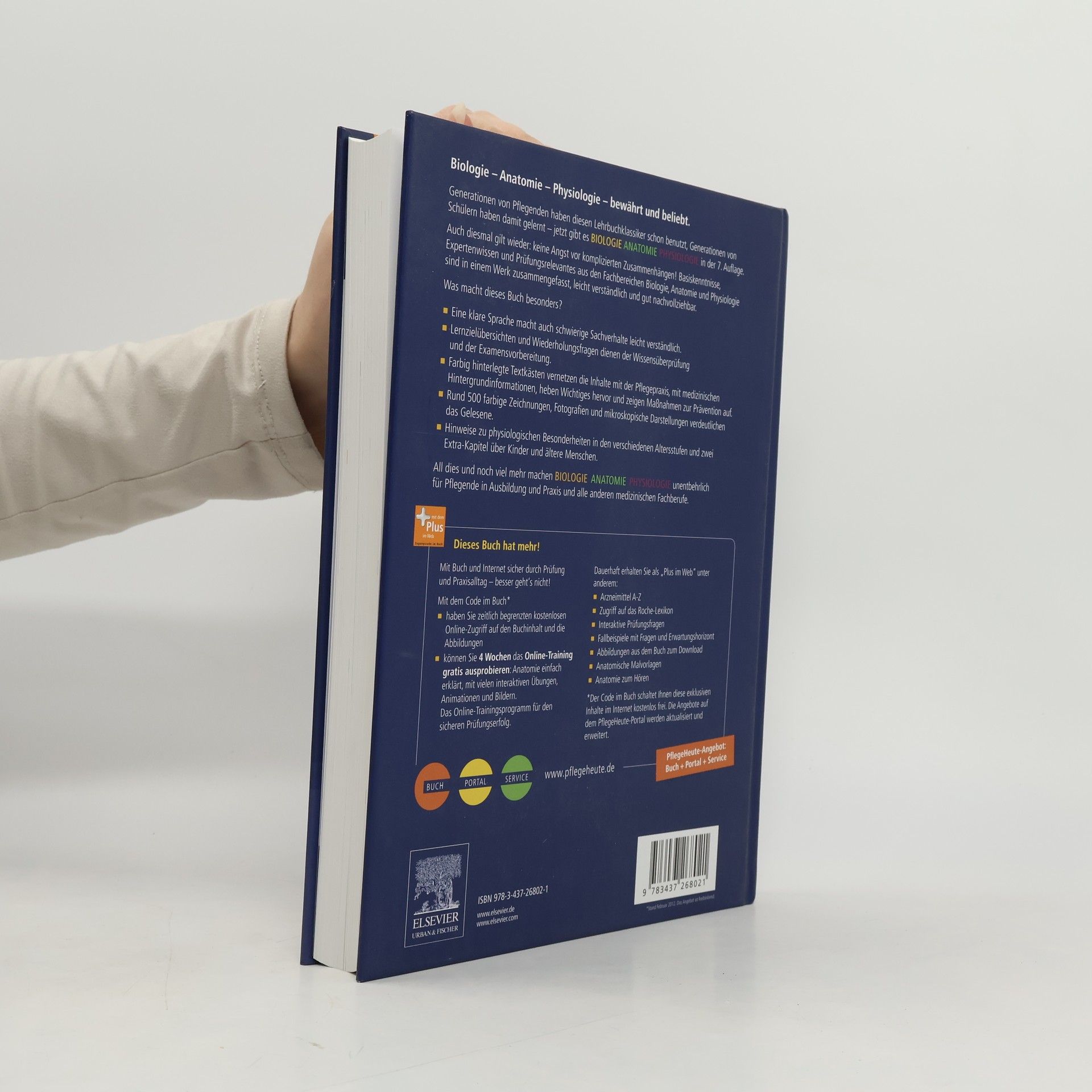 Kompakt und praxisnah bietet dieser Lehrbuch-Klassiker für die Pflegeausbildung alle relevanten Inhalte der Wissensgrundlagen Anatomie, Physiologie und Biologie. Diese sind eng mit Krankheitslehre und Pflege vernetzt und daher optimal auf die Berufspraxis ausgerichtet. Rund 500 hervorragende Farbillustrationen und eine klare Sprache machen auch komplizierte Zusammenhänge leicht verständlich. Lernzielübersichten und Wiederholungsfragen nach jedem Kapitel dienen der Wissensüberprüfung und der Examensvorbereitung. Neu in der 7. Auflage: - Sämtliche Inhalte überarbeitet und aktualisiert, insbesondere die Pflegehinweise und die klinischen und physiologischen Aspekte - Übersichtliches, lernfreundliches Layout - Abbildungen aktualisiert und erweitert um viele mikroskopische Aufnahmen Mit dem Code im Buch haben Sie ab Aktivierung 3 Monate kostenlosen Online-Zugriff auf den Buchinhalt und unbegrenzten Zugriff auf die Abbildungen. Dauerhaft erhalten Sie zusätzlich: - Interaktive Wiederholungsfragen zur Prüfungsvorbereitung - Fallbeispiele mit Fragen und Antworten - 4 Wochen lang exklusiven Zugang zu dem Online-Training zu Biologie Anatomie Physiologie & Mensch Körper Krankheit   und können sich auf die Prüfung vorbereiten: Anatomie einfach erklärt, mit vielen interaktiven Übungen, Animationen und Bilder – Prüfungserfolg garantiert!