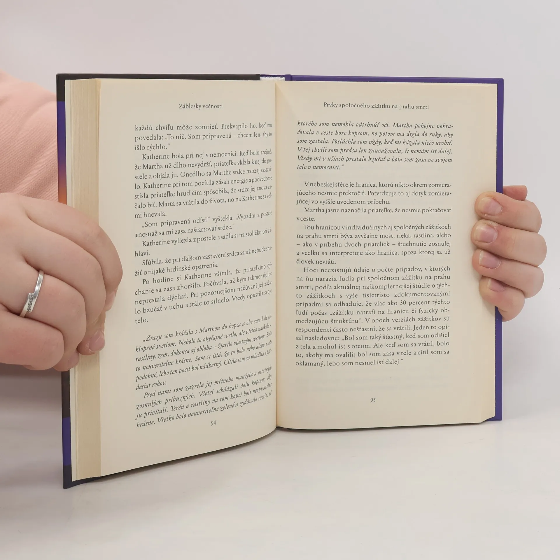 Kniha Záblesky večnosti nám približuje, ako rodina a priatelia často prežívajú prvé chvíle spolu so svojím blízkym na jeho ceste z tohto do nasledujúceho života. Autor hovorí o nich ako o „spoločných zážitkoch na prahu smrti“. Záblesky večnosti je prvá kniha, ktorá sa zaoberá týmto úžasným aspektom vzájomného duchovného prepojenia. Celé rodiny zhromaždené okolo smrteľnej postele blízkeho človeka vidia jasné svetlo z neznámeho zdroja. Niektorí vnímajú jemnú hmlu nad telom matky či otca, ktorý práve zomrel. Ďalší rozprávajú o tom, ako odprevádzali člena rodiny na jeho ceste do neba.... Príbehy v knihe Záblesky večnosti sú prekvapujúce a zároveň upokojujú. Ponúkajú útechu i nádej, vrhajú nové svetlo na tajuplnú cestu, čo nás čaká na konci tohto života.
