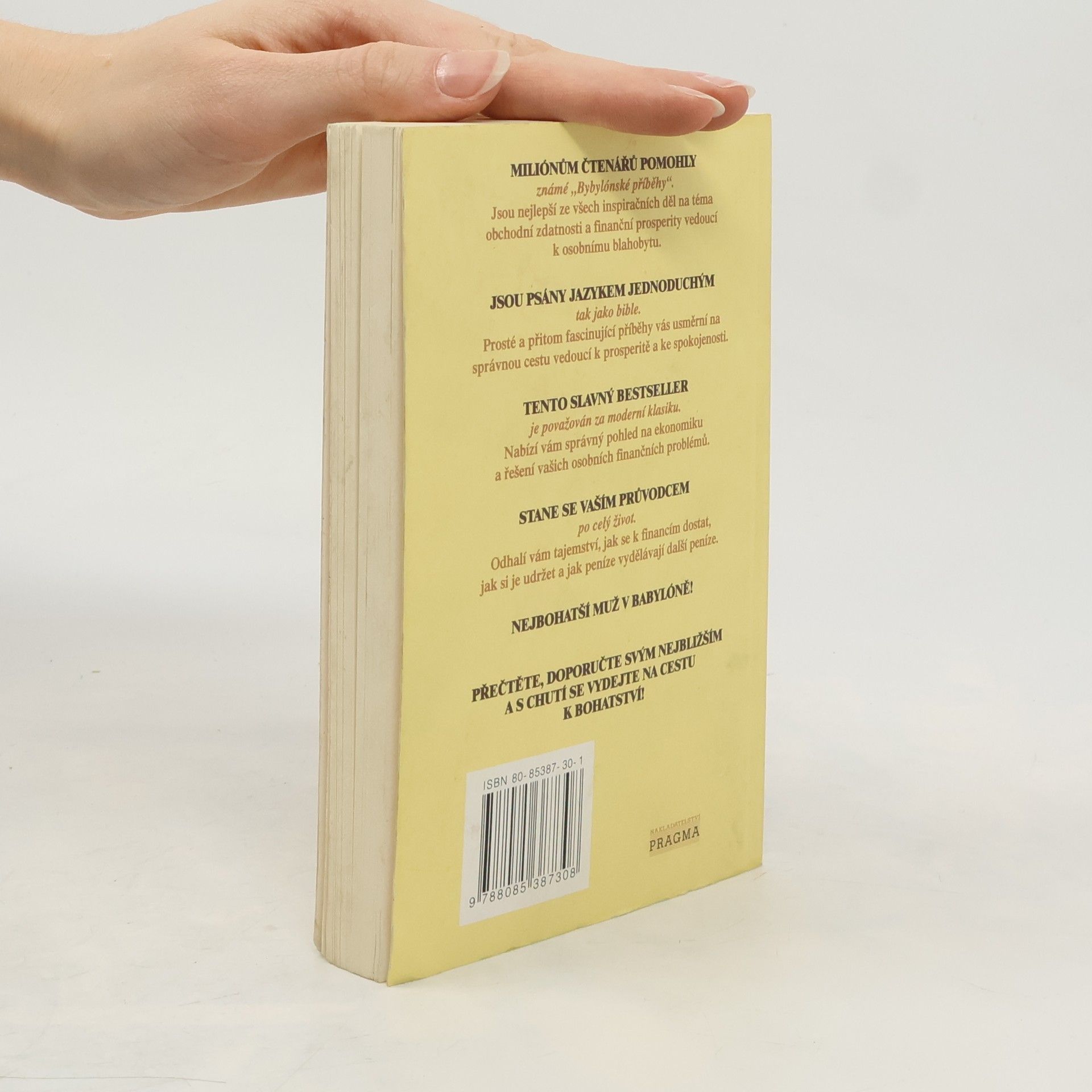 Nejlepší kniha, která kdy byla napsána na téma bohatství. Je vynikající inspirací a návodem, jak zbohatnout! Nejlepší ze všech inspiračních děl na téma obchodní zdatnosti a finanční prosperity vedoucí k osobnímu blahobytu. Prosté a přitom fascinující příběhy vás usměrní na správnoucestu vedoucí k úspěchu a ke spokojenosti, nabídnou vám správný pohled na ekonomiku a řešení vašich osobních problémů.Odhalí vám tajemství, jak se k financím dostat, jak si je udržet a jak peníze vydělávají další peníze.