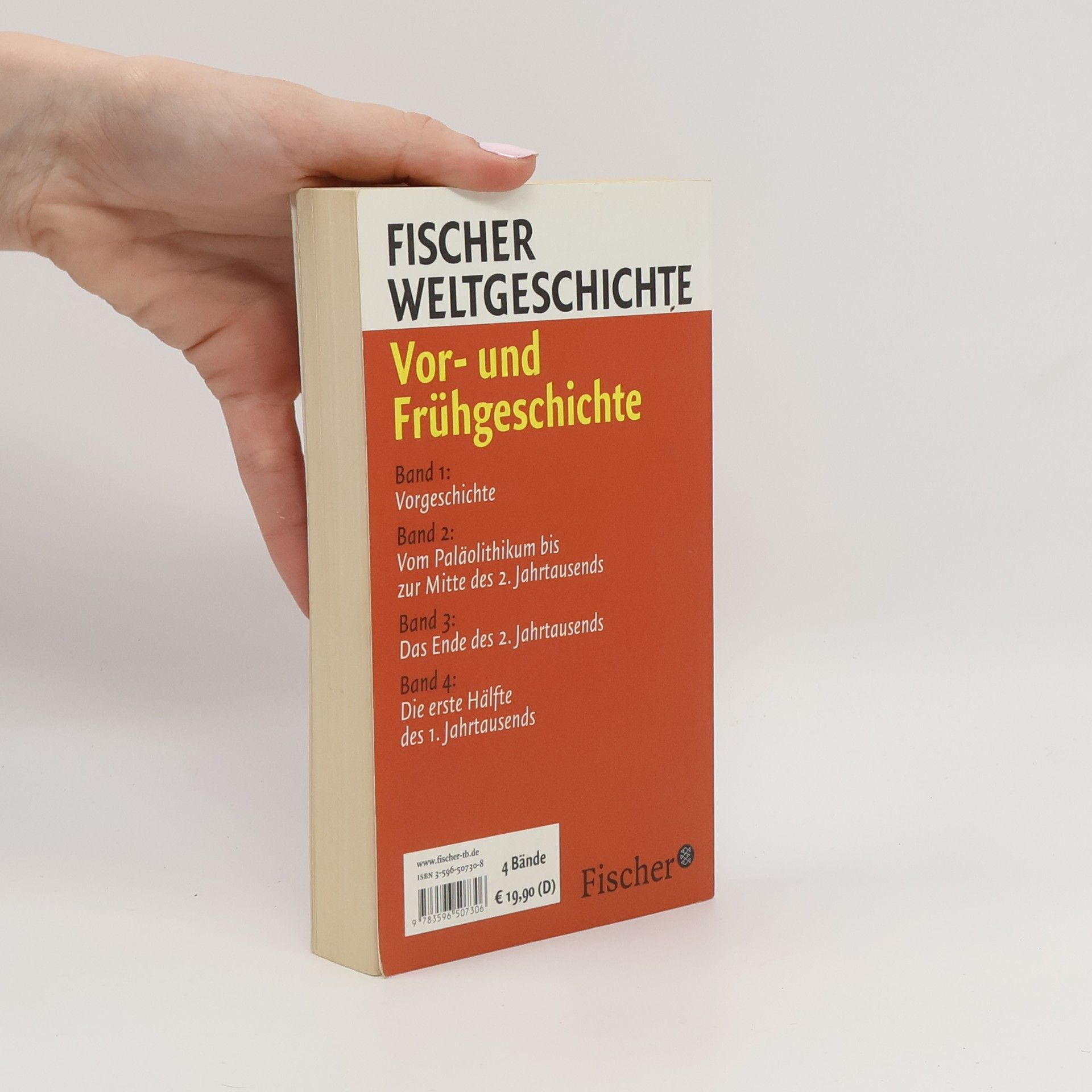 Fischer Weltgeschichte Vor- und Frühgeschichte Die erste Hälfte des 1. Jahrtausends Band 1: Vorgeschichte Band 2: Vom Paläolithikum bis zur Mitte des 2. Jahrtausends Die Altorientalischen Reiche I Band 3: Das Ende des 2. Jahrtausends Die Altorientalischen Reiche II Band 4: Die erste Hälfte des 1. Jahrtausends Die Altorientalischen Reiche III
