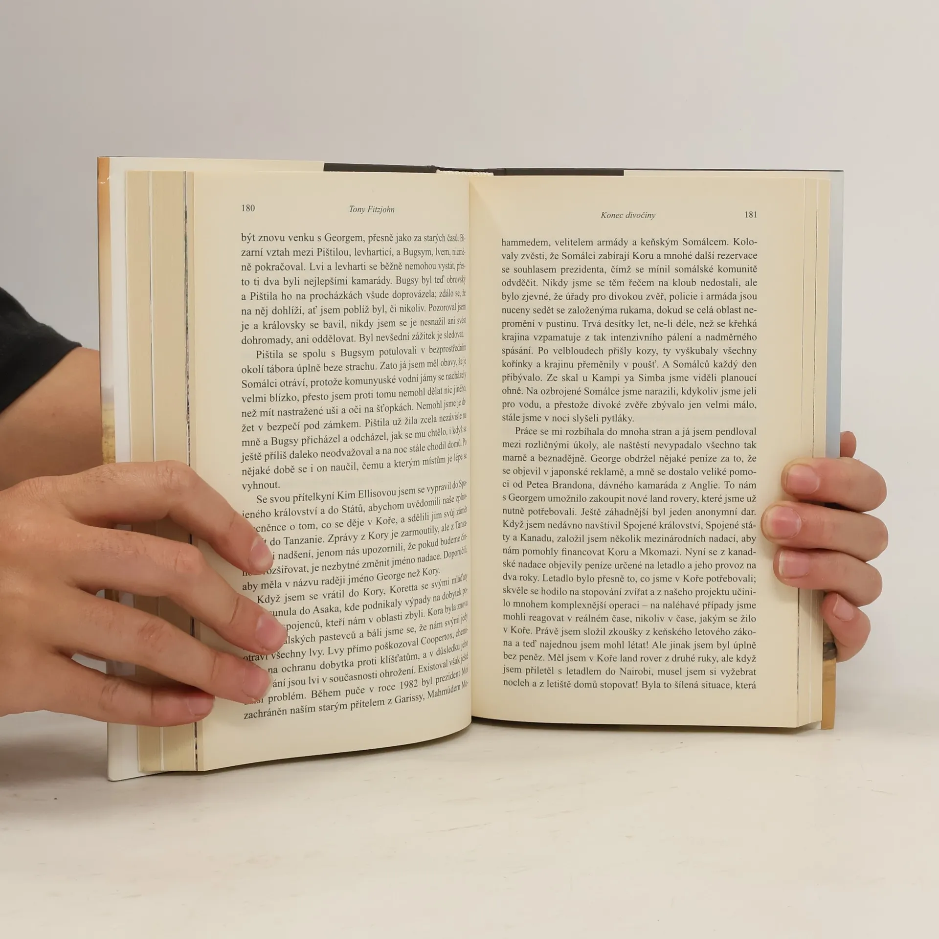 Národní parky v Keni a v Tanzanii přímo evokují exotické dálky a divukrásnou africkou krajinu. Autor kromě příhod se zvířaty popisuje i běžný život v přírodním parku – jak si v těchto vzdálených končinách obstarat potřebná vozidla, palivo, jídlo, zbraně, zaplatit ploty, zajistit nutné školení zaměstnanců. Tony Fitzjohn (nar. 1945) strávil dlouhá léta v Keni jako blízký spolupracovník a přítel George Adamsona a další roky prožil v Tanzanii, kde založil rezervaci Mkomazi.