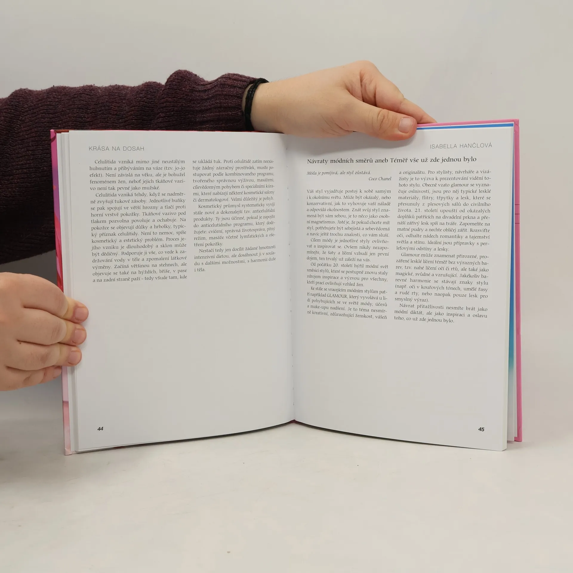 Příručka radí dospívajícím dívkám i ženám se zralou pletí jak pečovat o vzhled svého obličeje. O. Knoblochová, osobnost české kosmetiky, vzpomíná na své začátky a poskytuje ženám a dívkám rady jak být krásné v každém věku. Její dcera I. Hančlová se zaměřuje na péči o tělo a přináší rozhovory se slavnými osobnostmi. Stylistka a maskérka s dlouholetými zkušenostmi ze zahraničí A. Klenot přináší praktické rady a návody k líčení.