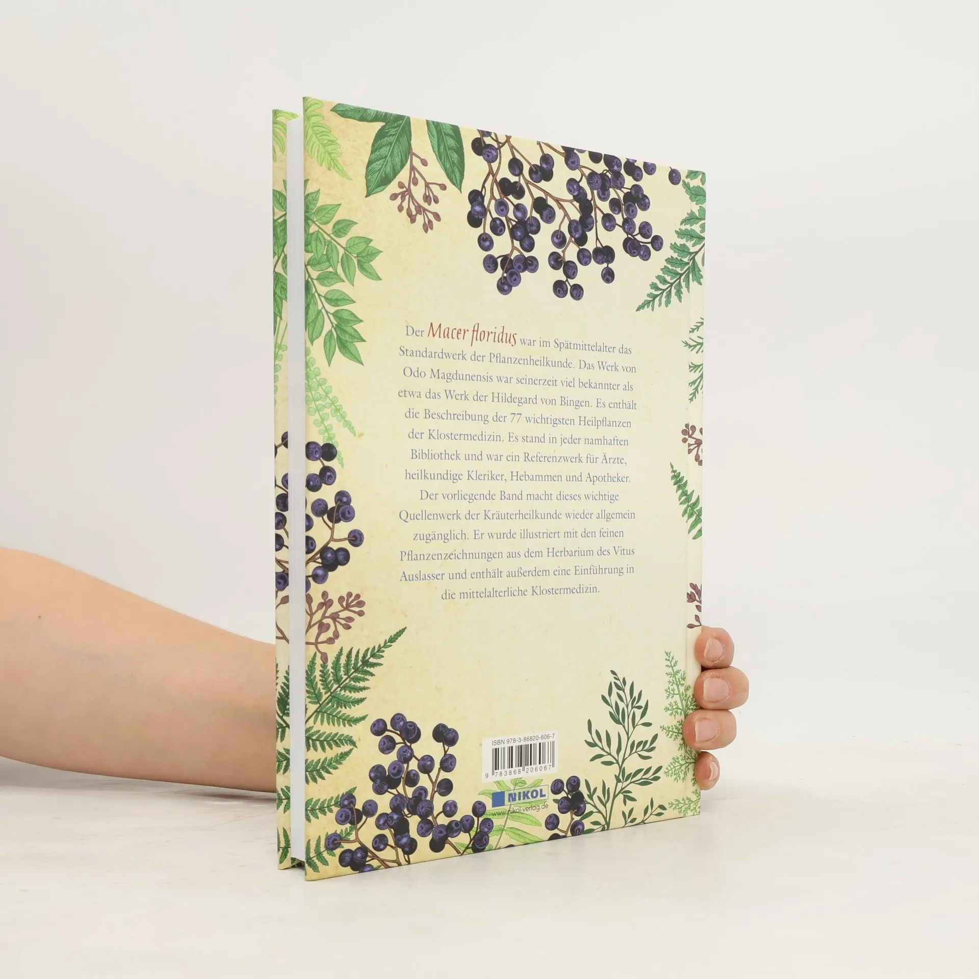 Der ‚Macer floridus‘ war im Mittelalter das Standardwerk der Kräuterheilkunde. Der Mönch Odo Magdunensis aus dem Loire-Tal beschrieb die Heilkräfte von 77 Pflanzen in lateinischen Hexametern. Dieser Band bringt die erste Übersetzung ins Neuhochdeutsche von Dr. Konrad Goehl. Zum besseren Verständnis wurde von der Forschergruppe Klostermedizin der Univer-sität Würzburg durch Dr. Johannes Gottfried Mayer und Dr. Konrad Goehl eine allgemeinver-ständliche Darstellung der Grundlagen der mittelalterlichen Medizin vorangestellt. Sie schließt auch das Werk des großen persischen Arztes Avicenna mit ein, der als Vorbild für den Meister im Roman ‚Der Medicus‘ diente. Das Thema „Heilkräuter der Klostermedizin“ erfreut sich, unterstützt durch Presse, Funk und Fernsehen, großer Beliebtheit, da den natürlichen Heilkräften die Zukunft gehört.
