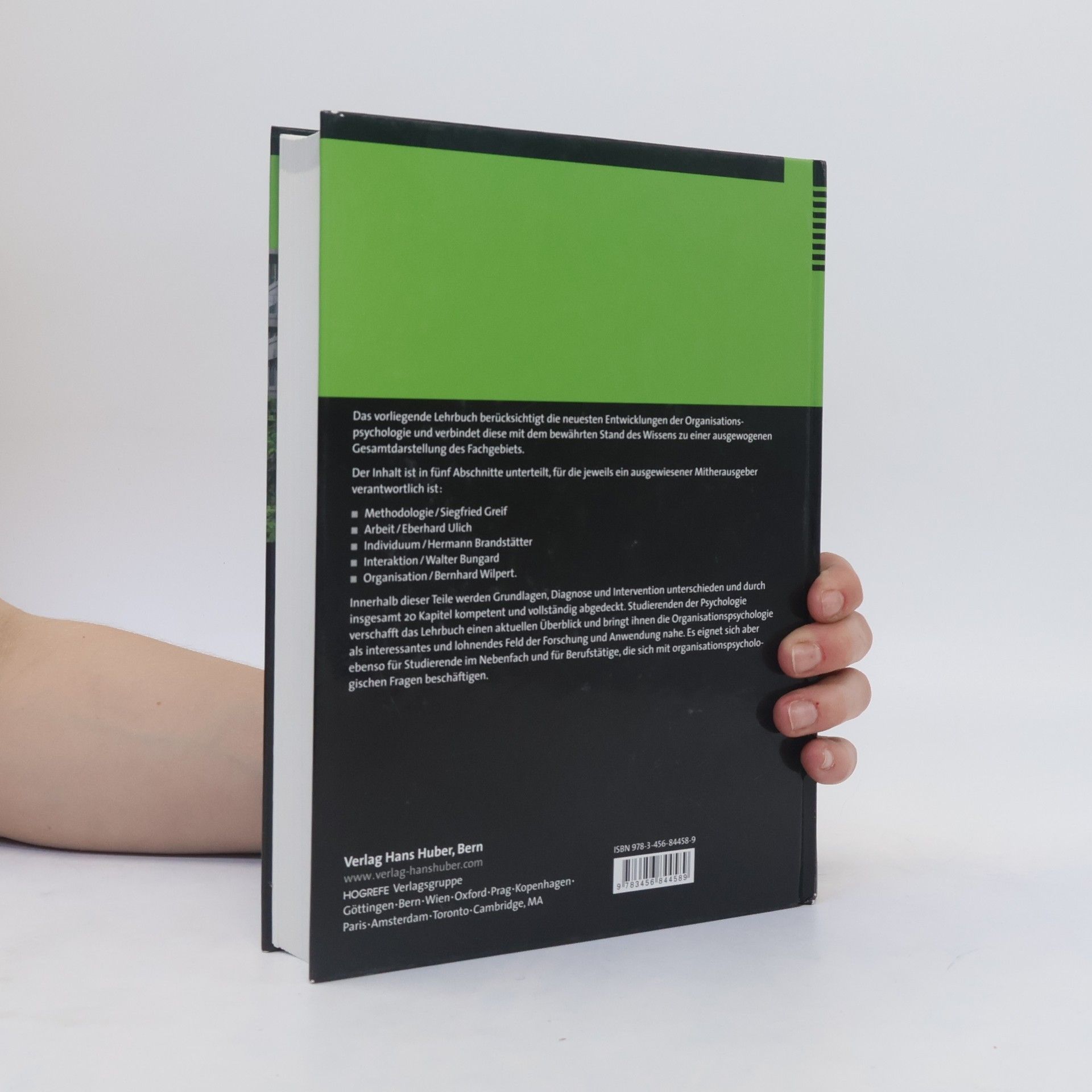 Die Organisationspsychologie ist heute an allen Universitätsinstituten und einer wachsenden Anzahl von Fachhochschulen als Studienschwerpunkt etabliert. Mit der Neuauflage des Lehrbuchs Organisationspsychologie ist dieses Lehrfach bestens repräsentiert, denn es werden neue Entwicklungen mit dem bewährten Stand des Wissens zu einer ausgewogenen Gesamtdarstellung des Fachgebiets verknüpft. Der Inhalt ist in fünf Abschnitte unterteilt, für die jeweils ein besonders ausgewiesener Mitherausgeber verantwortlich zeichnet: - Methodologie - Siegfried Greif - Arbeit - Eberhard Ulich - Individuum - Hermann Brandstätter - Interaktion - Walter Bungard - Organisation - Bernhard Wilpert Innerhalb dieser Teile werden Grundlagen, Diagnose und Intervention unterschieden und durch insgesamt 20 Kapitel kompetent und gründlich abgedeckt. Studierenden der Psychologie verschafft dieses Lehrbuch einen aktuellen Überblick und bringt ihnen die Organisationspsychologie als interessantes und lohnendes Feld der Forschung und Anwendung nahe. Aber auch für Studierende im Nebenfach und für Berufstätige, die mit organisationspsychologischen Fragen zu tun haben, ist der Text eine wertvolle Hilfe, um sich mit den wichtigsten Teilgebieten und Arbeitsweisen der Organisationspsychologie vertraut zu machen