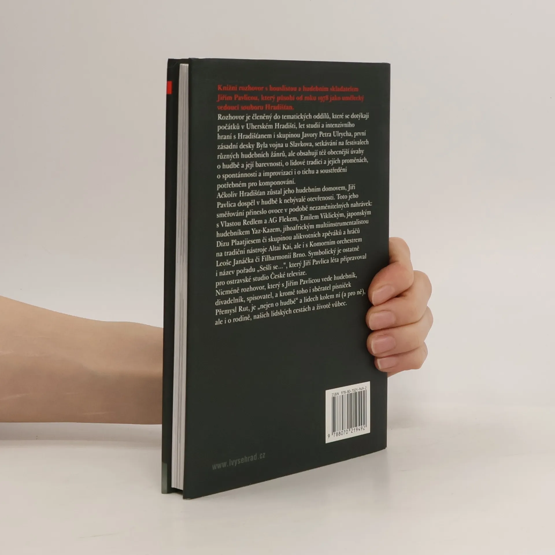 Knižní rozhovor s houslistou a hudebním skladatelem Jiřím Pavlicou, který působí od roku 1978 jako umělecký vedoucí souboru Hradišťan. Rozhovor je členěn do tématických oddílů, které se dotýkají počátků v Uherském Hradišti, let studií i intenzivního hraní s Hradišťanem i skupinou Javory Petra Ulrycha, první zásadní desky Byla vojna u Slavkova, setkávání na festivalech různých hudebních žánrů, ale obsahují též obecnější úvahy o hudbě a její barevnosti, o lidové tradici a jejích proměnách, o spontánnosti a improvizaci i o tichu a soustředění potřebném pro komponování. Ačkoli Hradišťan zůstal jeho hudebním domovem, Jiří Pavlica dospěl v hudbě k nebývalé otevřenosti. Toto jeho směřování přineslo ovoce v podobě nezaměnitelných nahrávek: s Vlastou Redlem a AG Flekem, Emilem Viklickým, japonským hudebníkem Yaz-Kazem, jihoafrickým multiinstrumentalistou Dizu Plaatjiesem či skupinou alikvotních zpěváků a hráčů na tradiční nástroje Altai Kai, ale i s Komorním orchestrem Leoše Janáčka či Filharmonií Brno. Symbolický je ostatně i název pořadu \"Sešli se...\", který Jiří Pavlica léta připravoval pro ostravské studio České televize. Nicméně rozhovor, který s Jiřím Pavlicou vede hudebník, divadelník, spisovatel, a kromě toho i sběratel písniček Přemysl Rut, je \"nejen o hudbě\" a lidech kolem ní (a pro ně), ale i o rodině, našich lidských cestách a životě vůbec.