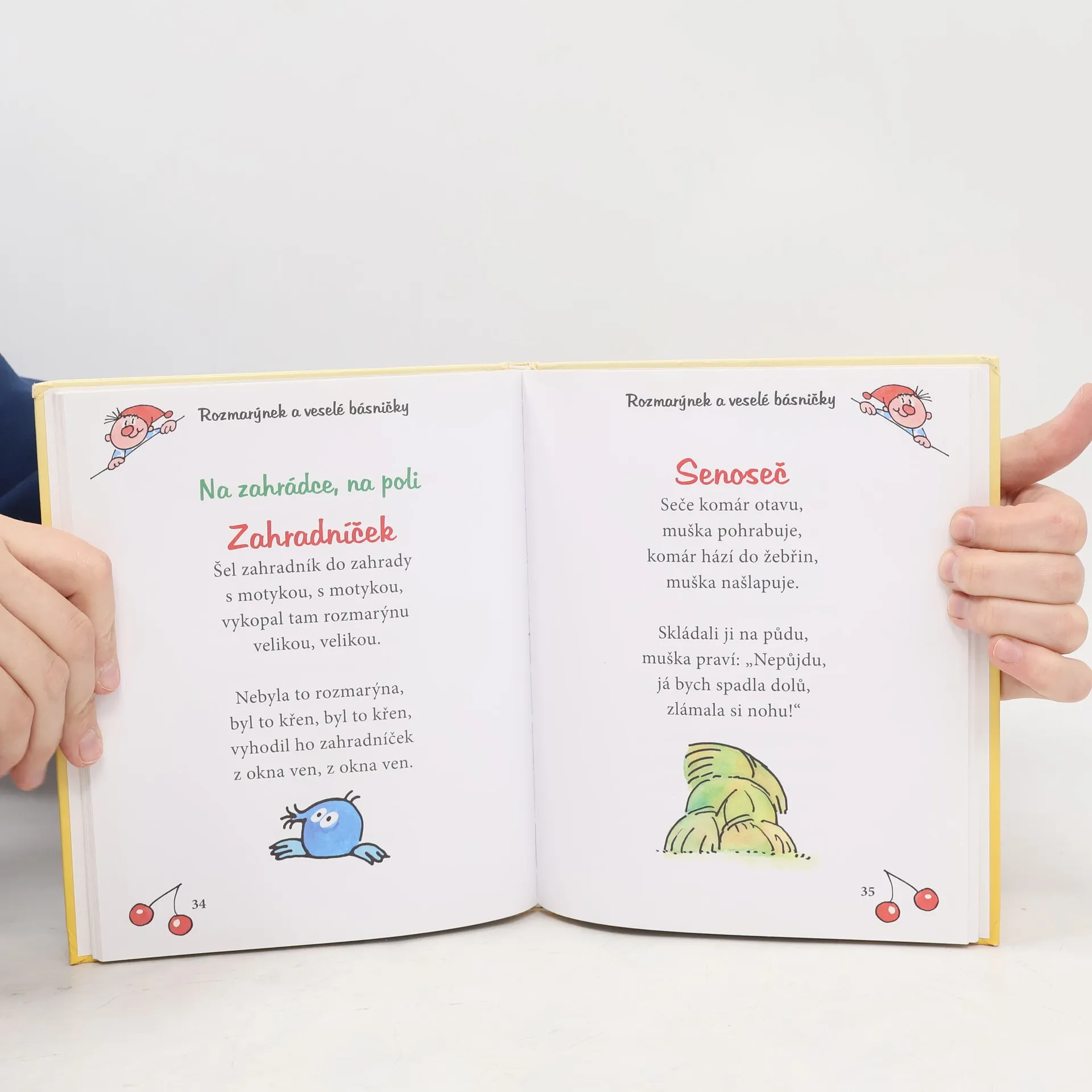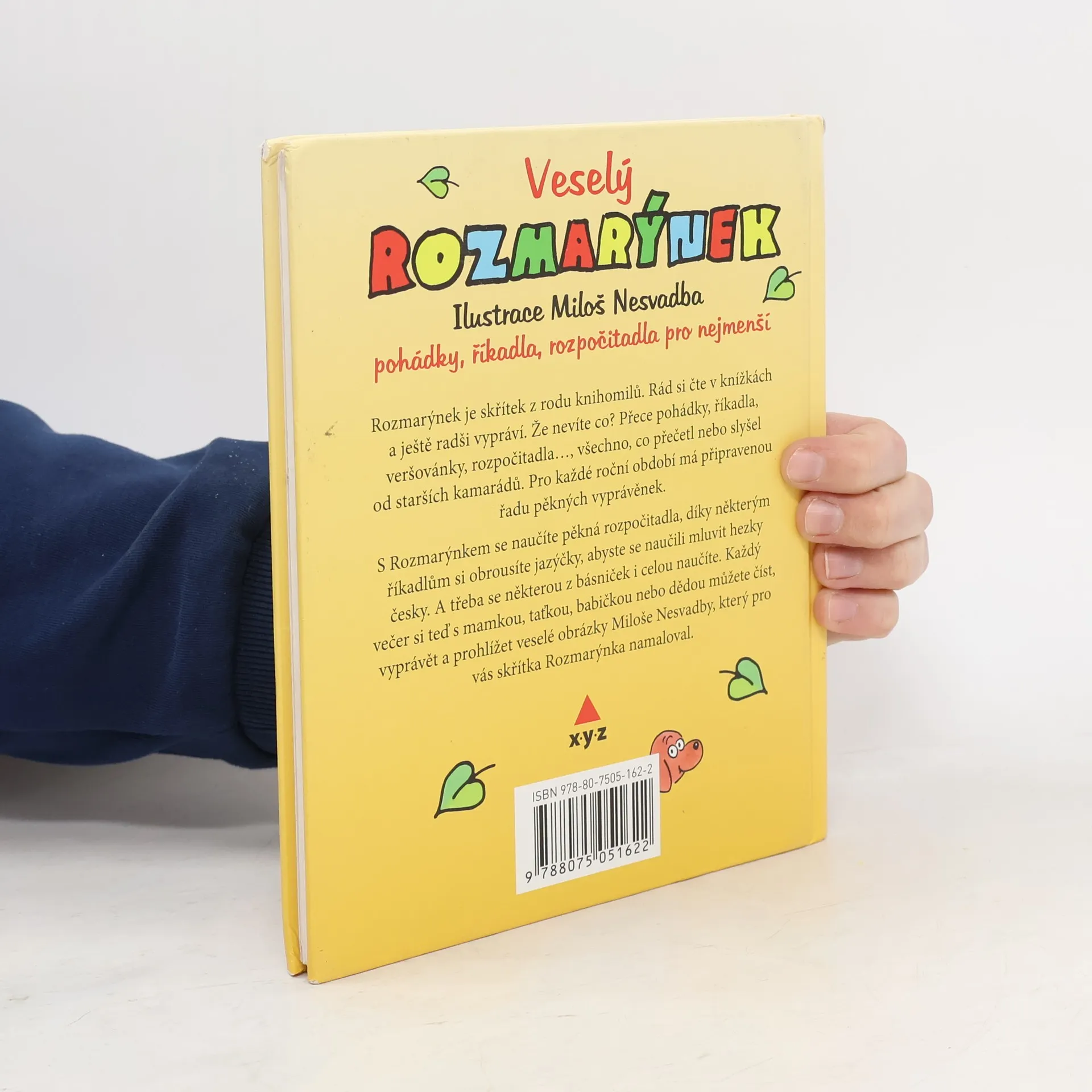 Rozmarýnek je skřítek z rodu knihomilů. Rád si čtev knížkách a ještě radši vypráví. Že nevíte co? Přece pohádky, říkadla, vešovánky, rozpočitadla..., všechno, co přečetl nebo slyšel od starších kamarádů. Pro každé roční období má připravenou řadu pěkných vyprávěnek. S Rozmarýnkem se naučíte pěkná rozpočitadla, díky některým říkadlům si obrousíte jazýčky, abyste se naučili mluvit hezky česky. A třeba se některou z básniček i celou naučíte. Každý večer si teď s mamkou, taťkou, babičkou nebo dědou můžete číst, vyprávět a prohlížet veselé obrázky Miloše Nesvadby, který pro vás skřítka Rozmarýnka namaloval