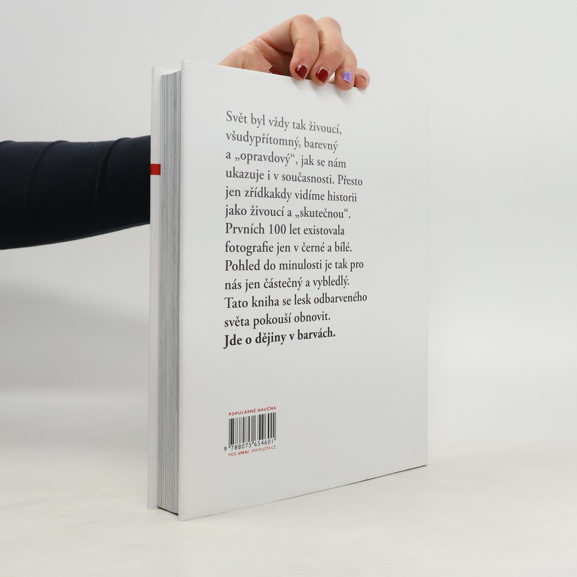 Výjimečná a v současné knižní produkci ojedinělá publikace Barvy času pokrývá více než 100 let světových dějin: od vlády královny Viktorie a americké občanské války až ke kubánské krizi a počátkům kosmického věku. Zaznamenává vzestup a pád impérií, vědecké objevy, průmyslový vývoj, umění, tragédie válek, politiku míru a životy mužů a žen, kteří tvořili dějiny. Bohatě ilustrovaná kniha je společným dílem renomovaného britského historika Dana Jonese, autora bestsellerů žebříčku The New York Times, a talentované brazilské umělkyně Mariny Amaralové. Ta na základě unikátních fotografií vytvořila 200 úchvatných obrazů, které přivedla k životu s pomocí digitálního kolorování. Dan Jones ke každému z nich napsal poutavý text, který jej zasazuje do historického kontextu. Vznikl tak živoucí celistvý obraz světa, v němž dnes žijeme.
