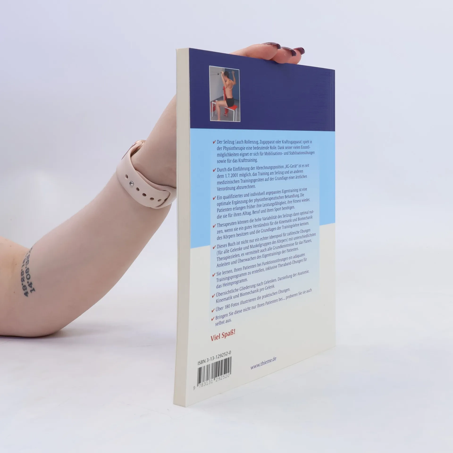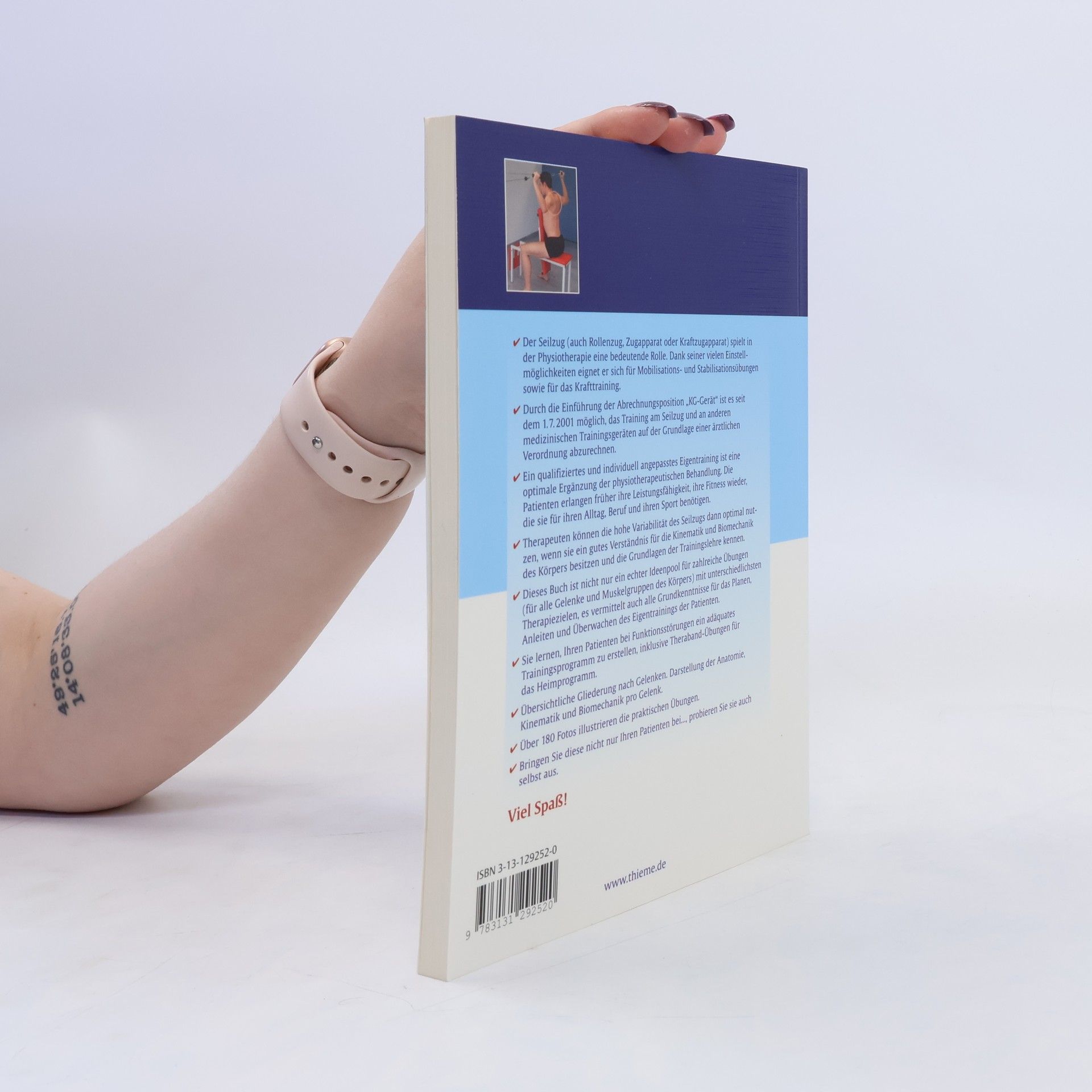 Der Seilzug spielt in der Physiotherapie eine bedeutende Rolle. Mit seinen vielen Einstellmöglichkeiten eignet er sich für Mobilisations-, Stabilisationsübungen und Krafttraining. Seit dem 1.7. 2001 ist es möglich, das Training am Seilzug und anderen medizinischen Trainingsgeräten auf Basis einer ärztlichen Verordnung abzurechnen. Ein qualifiziertes, individuell angepasstes Eigentraining ergänzt die physiotherapeutische Behandlung optimal, sodass Patienten schneller ihre Leistungsfähigkeit und Fitness für Alltag, Beruf und Sport zurückgewinnen. Therapeuten können die hohe Variabilität des Seilzugs optimal nutzen, wenn sie ein gutes Verständnis für Kinematik und Biomechanik des Körpers sowie Grundlagen der Trainingslehre haben. Dieses Werk bietet einen Ideenpool für zahlreiche Übungen für alle Gelenke und Muskelgruppen mit verschiedenen Therapiezielen. Es vermittelt auch die Grundkenntnisse für die Planung, Anleitung und Überwachung des Eigentrainings der Patienten. Sie lernen, adäquate Trainingsprogramme für Funktionsstörungen zu erstellen, einschließlich Theraband-Übungen für das Heimprogramm. Die übersichtliche Gliederung nach Gelenken und die Darstellung der Anatomie, Kinematik und Biomechanik pro Gelenk werden durch über 180 Fotos ergänzt, die praktische Übungen illustrieren. Viel Spaß beim Ausprobieren!