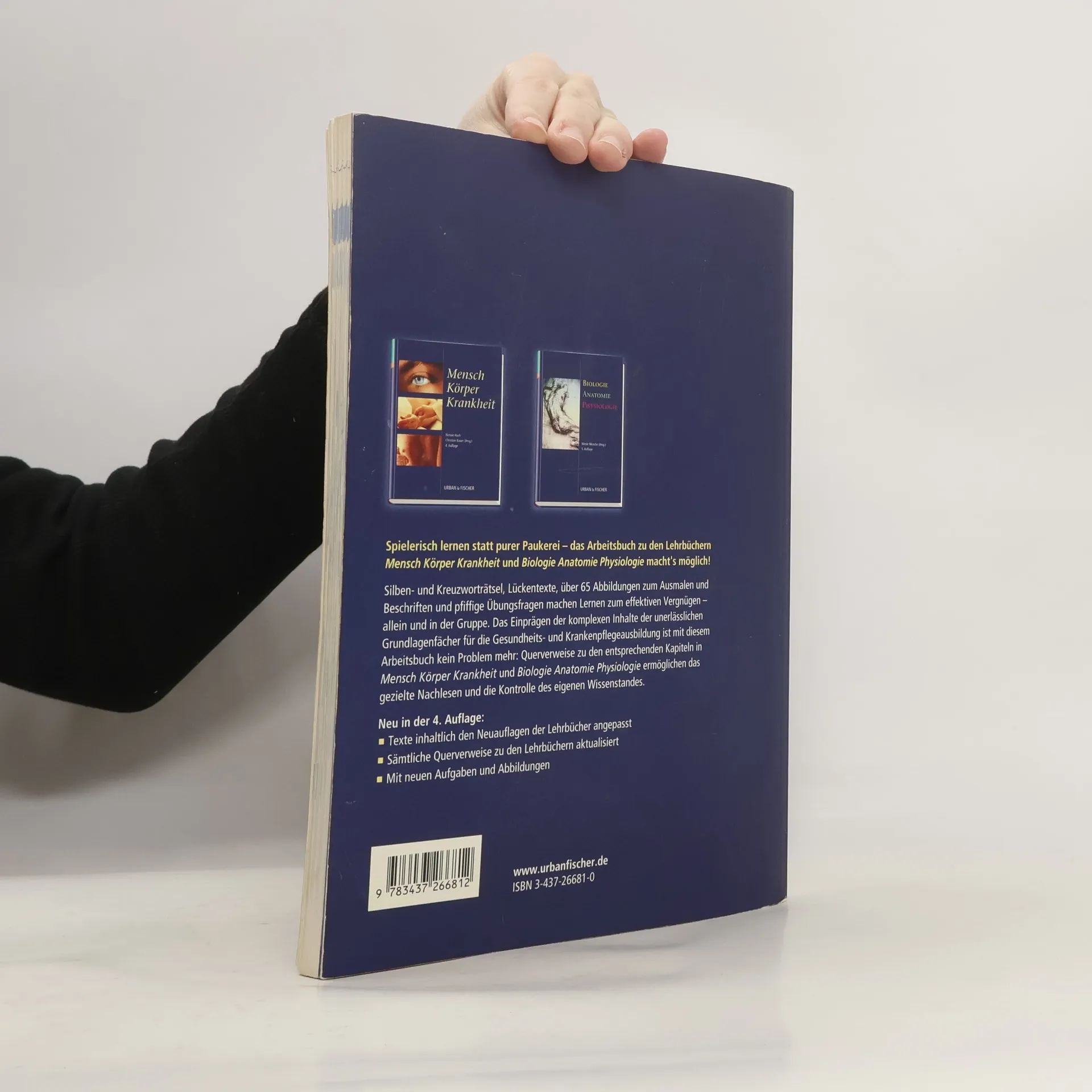 Fallbeispiele, Silben- und Kreuzworträtsel, Lückentexte, rund 70 Abbildungen zum Ausmalen und Beschriften und pfiffige Übungsfragen machen Lernen zum effektiven Vergnügen - allein und in der Gruppe. Das Einprägen der Inhalte der unerlässlichen Grundlagenfächer für die Gesundheits- und Krankenpflegeausbildung ist mit diesem Arbeitsbuch kein Problem mehr. Im Lösungsteil am Ende des Buches kann das Ergebnis schnell überprüft werden.Neu in der 6. Übungen inhaltlich den aktuellen Auflagen der Lehrbücher angepasstNeue Fallbeispiele mit dazugehörigen FragenSämtliche Querverweise auf „Biologie Anatomie Physiologie“ und „Mensch Körper Krankheit“ aktualisiertInteraktive Übungsaufgaben zum spielerischen Testen des Wissens am PC