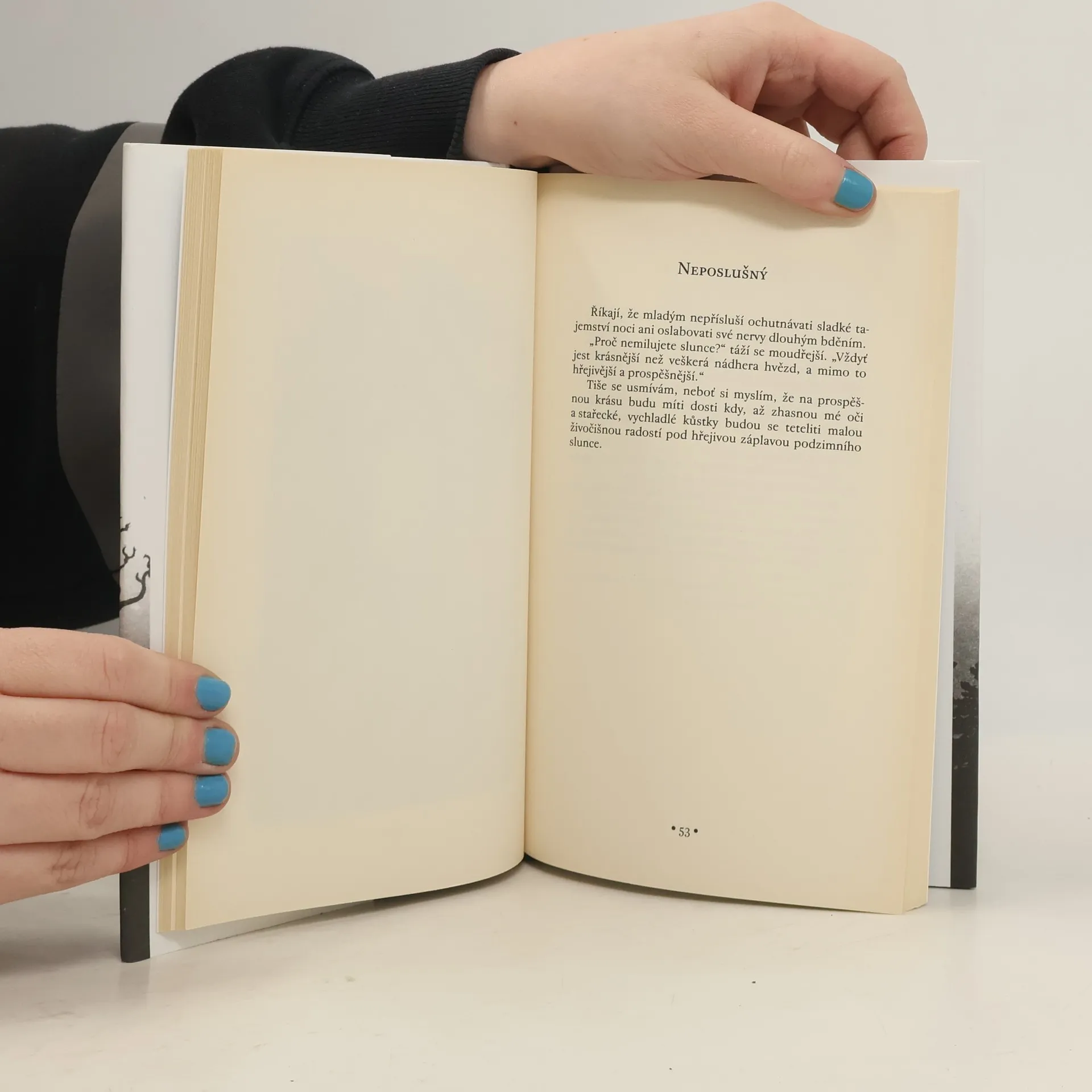 I rané texty, za které autor ještě nenese plnou literární odpovědnost, mohou být strhující. Výbor mladistvých próz Jiřího Wolkra je uveden dvěma takřka neznámými pohádkami (jde ale spíše o texty pro dospělého čtenáře). Zvláště titulní pohádka upoutá svou pochmurnou, podmanivou atmosférou. Dále jsou zahrnuty básně v próze, z nichž některé se čas od času objevují ve výborech z básníkova díla, zde jsou však uvedeny v plném rozsahu. Na závěr je zařazeno několik povídek s různými náladami i náměty, ať už jsou to nemocní hudebníci hrající pod rouškou noci, zuřivá rozkoš s neznámou na lesním palouku vedoucí na pokraj šílenství, nebo děti měnící se v odvodní komisi. Atmosféru doplňují linoryty mladé japonské ilustrátorky Nanako Ishida.