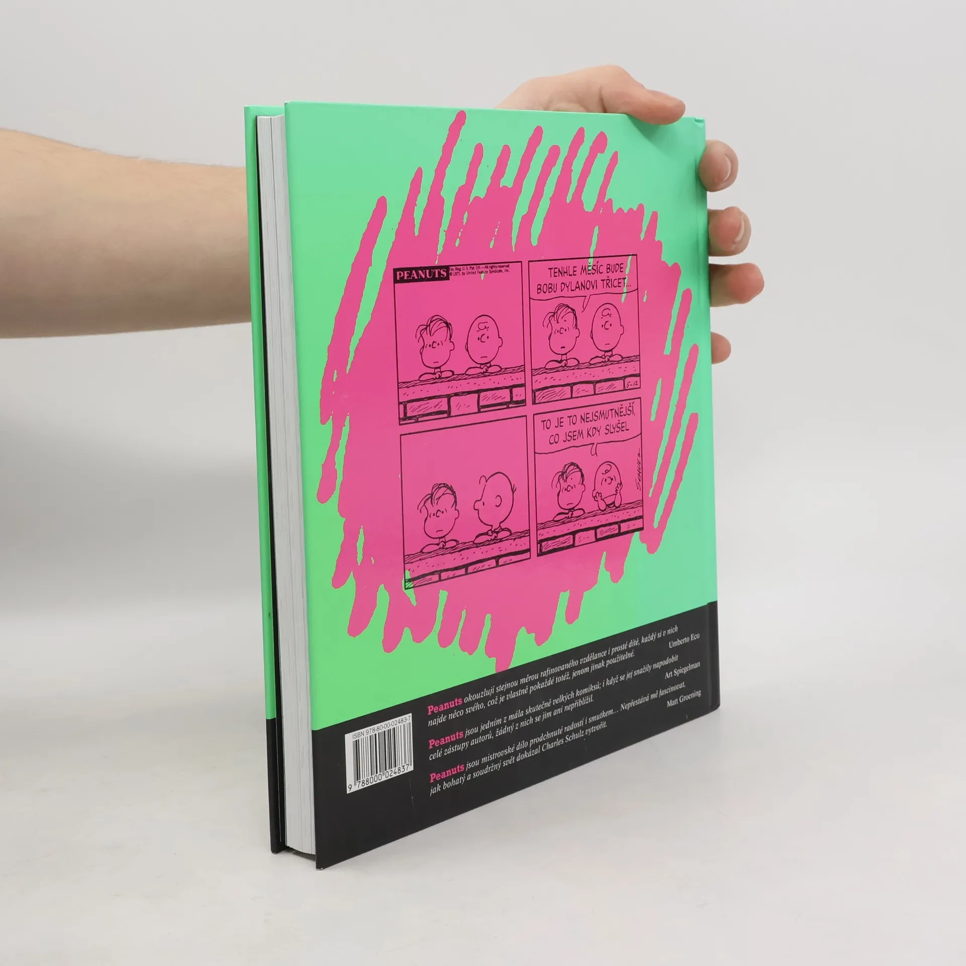 Svět podle Snoopyho je prvním českým výborem z komiksových stripů, které Charles Schulz denně kreslil pro americké noviny v letech 1970 - 1990. Lze bez velké nadsázky konstatovat, že Peanuts, tedy Snoopy a jeho přátelé, jsou největším komiksovým stripem 20. století: všechno,co je na tomto žánru zajímavé, má svůj původ právě tady. Jinak řečeno, všechny moderní komiksové stripy od Garfielda přes Calvina a Hobbese či Mafaldu po takový Red Meat se u Snoopyho zcela zásadně inspirovaly. Bylo by omylem si myslet, že je Svět podle Snoopyho určen dětemale bylo by také omylem myslet si, že dětem určen není. Je to prosté: Snoopy potěší čtenáře všeho věku. Díky bravurnímu jazyku, laskavému i břitkému vidění světa, pronikavému humoru a geniálně jednoduchému výtvarnému pojetí se s dětskými postavami, které v knizeřeší své existenciální krize a životní problémy, ztotožníme všichni, ať už je nám deset či osmdesát.