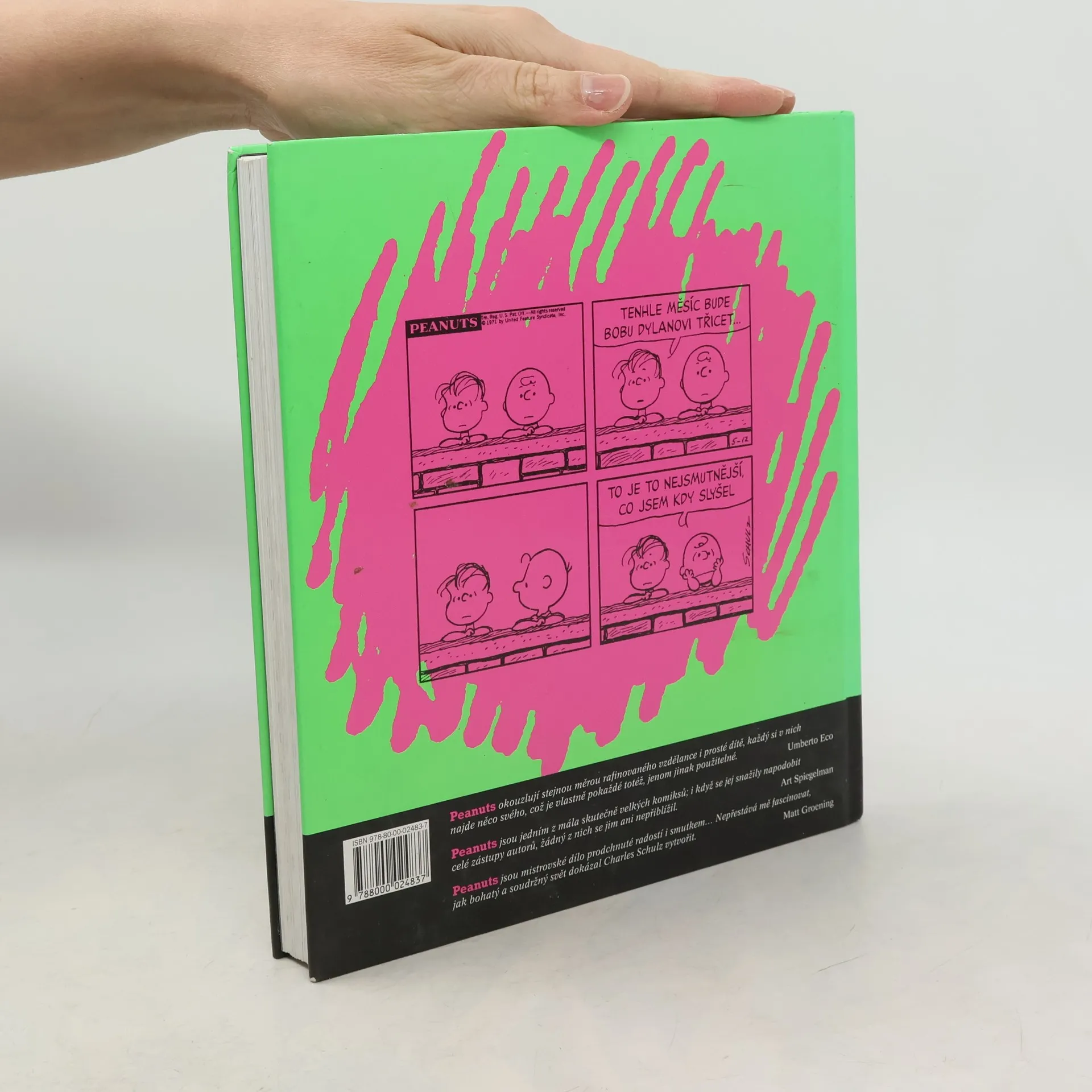 Svět podle Snoopyho je prvním českým výborem z komiksových stripů, které Charles Schulz denně kreslil pro americké noviny v letech 1970 - 1990. Lze bez velké nadsázky konstatovat, že Peanuts, tedy Snoopy a jeho přátelé, jsou největším komiksovým stripem 20. století: všechno,co je na tomto žánru zajímavé, má svůj původ právě tady. Jinak řečeno, všechny moderní komiksové stripy od Garfielda přes Calvina a Hobbese či Mafaldu po takový Red Meat se u Snoopyho zcela zásadně inspirovaly. Bylo by omylem si myslet, že je Svět podle Snoopyho určen dětemale bylo by také omylem myslet si, že dětem určen není. Je to prosté: Snoopy potěší čtenáře všeho věku. Díky bravurnímu jazyku, laskavému i břitkému vidění světa, pronikavému humoru a geniálně jednoduchému výtvarnému pojetí se s dětskými postavami, které v knizeřeší své existenciální krize a životní problémy, ztotožníme všichni, ať už je nám deset či osmdesát.