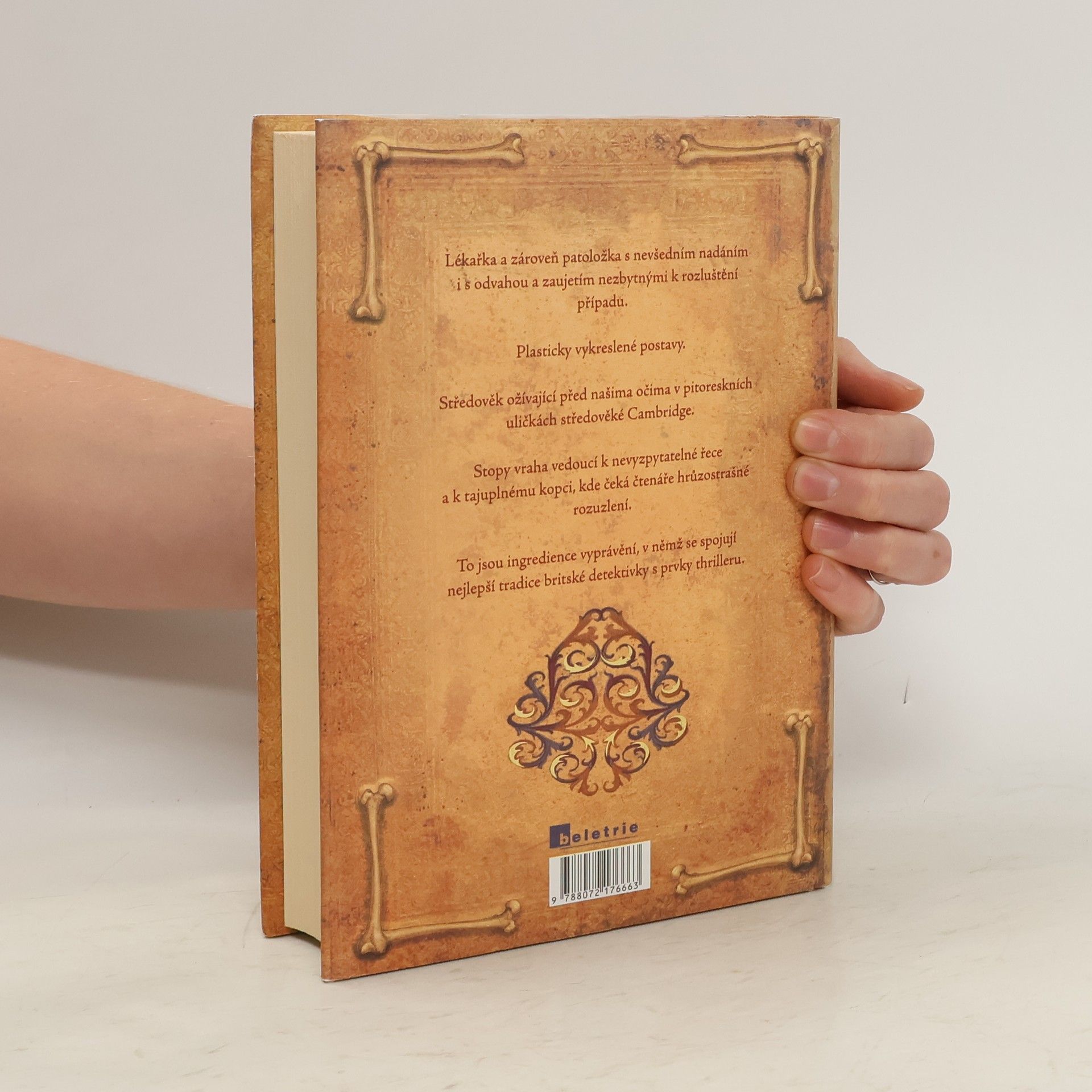 První kniha série Adélie Aguilarová. Na počátku románu, který se odehrává v Cambridgi dvanáctého století, jsou čtyři brutálně zavražděné děti. Všeobecné zděšení, obracející se proti židovské komunitě, nutí anglického krále povolat specialisty až z jižní Itálie. Do Anglie přijíždí pozoruhodná trojice sestávající z vyšetřovatele židovského původu, arabského osobního strážce a především mladé lékařky. Lékařka je "vykladačka smrti", což je raná forma povolání zvaného v současnosti soudní lékař, a zároveň hlavní hrdinka celého příběhu. Příběhu plného napětí, v němž se dramatický spád vyprávění snoubí se znamenitě konstruovanou zápletkou. Příběhu, který nám zároveň připomíná, že střetávání kultur, náboženská zaslepenost a zápas humanity s intolerancí provázejí lidstvo od nepaměti.