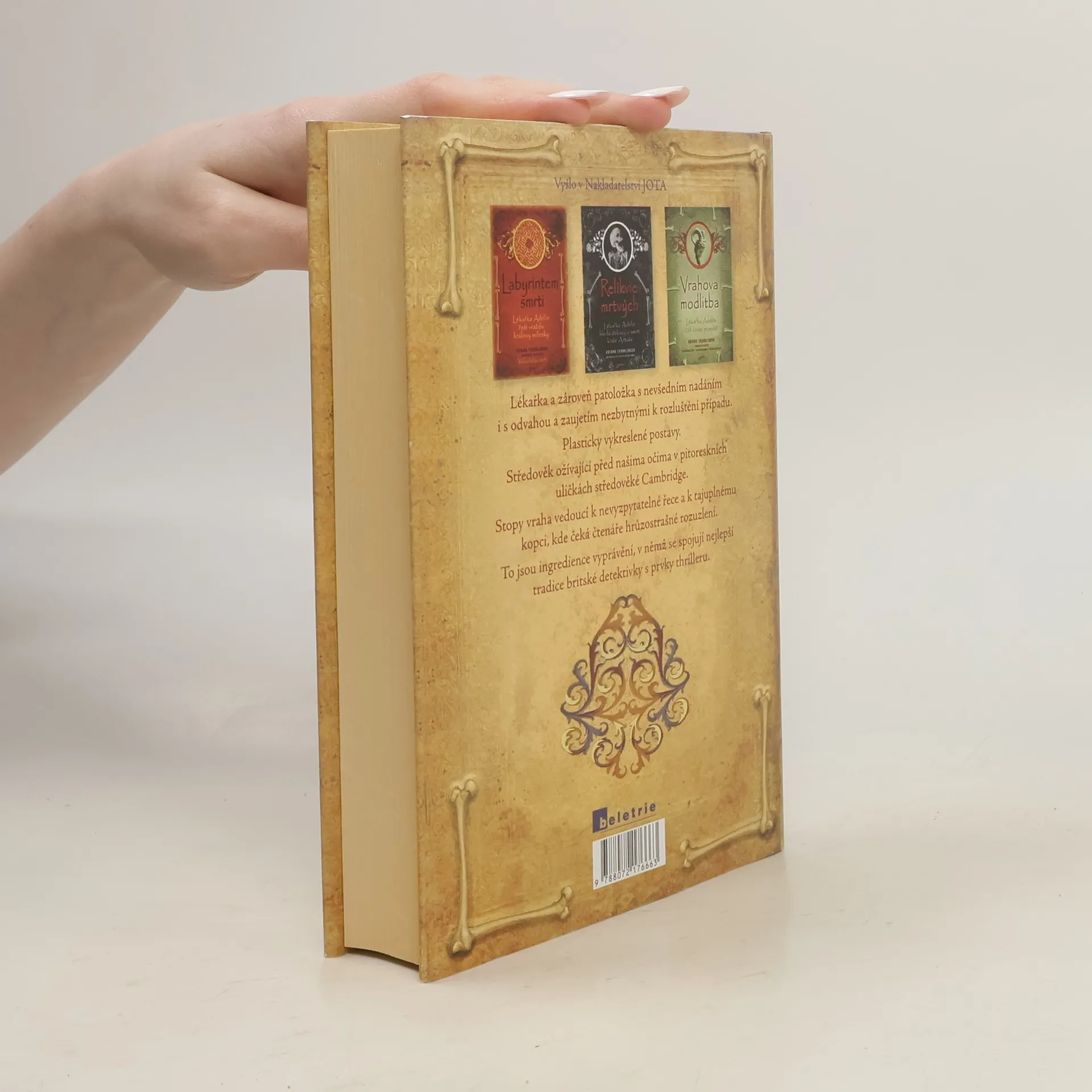 První kniha série Adélie Aguilarová. Na počátku románu, který se odehrává v Cambridgi dvanáctého století, jsou čtyři brutálně zavražděné děti. Všeobecné zděšení, obracející se proti židovské komunitě, nutí anglického krále povolat specialisty až z jižní Itálie. Do Anglie přijíždí pozoruhodná trojice sestávající z vyšetřovatele židovského původu, arabského osobního strážce a především mladé lékařky. Lékařka je "vykladačka smrti", což je raná forma povolání zvaného v současnosti soudní lékař, a zároveň hlavní hrdinka celého příběhu. Příběhu plného napětí, v němž se dramatický spád vyprávění snoubí se znamenitě konstruovanou zápletkou. Příběhu, který nám zároveň připomíná, že střetávání kultur, náboženská zaslepenost a zápas humanity s intolerancí provázejí lidstvo od nepaměti.