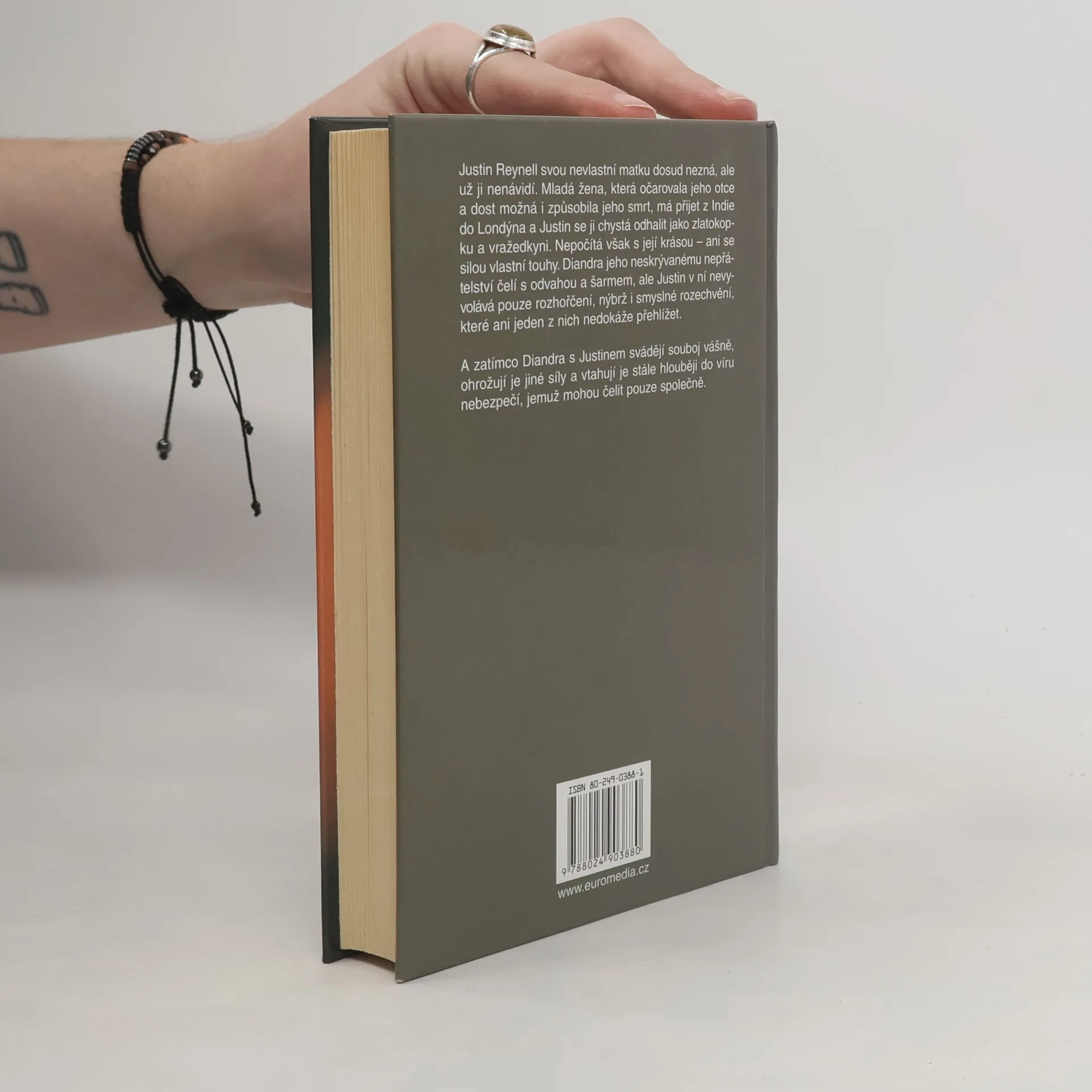 Justin Reynell svou nevlastní matku dosud nezná, ale už ji nenávidí. Mladá žena, která očarovala jeho otce a dost možná i způsobila jeho smrt, má přijet z Indie do Londýna a Justin se ji chystá odhalit jako zlatokopku a vražedkyni. Nepočítá však s její krásou – ani se silou vlastní touhy. Diandra jeho neskrývanému nepřátelství čelí s odvahou a šarmem, ale Justin v ní nevyvolává pouze rozhořčení, nýbrž i smyslné rozechvění, které ani jeden z nich nedokáže přehlížet. A zatímco Diandra s Justinem svádějí souboj vášně, ohrožují je jiné síly a vtahují je stále hlouběji do víru nebezpečí, jemuž mohou čelit pouze společně.