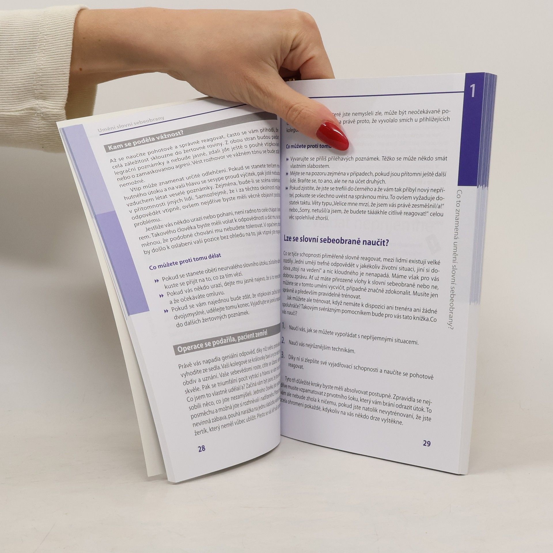 Kritizuje vás nespravedlivě šéf? Pošťuchují vás kolegové v práci? Vytáčí vás arogantní chování prodavačky v obchodě? Vyvolává právě partner hádku? Vyzkoušejte si na praktických příkladech a testech techniky, jak usměrnit diskusi trefnou replikou ve svůj prospěch a jak získat navrch. V knize se dozvíte: - jak se pohotově bránit drobným provokacím a kritice; - jak účinně řešit nepříjemné situace; - jak si chytře získat sympatie svého okolí; - jak s přehledem reagovat na jízlivé poznámky; - jak si dopředu natrénovat obratné reakce; - jak se zachovat před rozzuřeným šéfem; - jak formulovat své odpovědi vybroušeně a elegantně; - jak si hrát se slovy a jejich významy; - a mnoho dalších rad, komunikačních technik, příkladů a testů, jak usměrnit konverzaci trefnou replikou ve svůj prospěch.