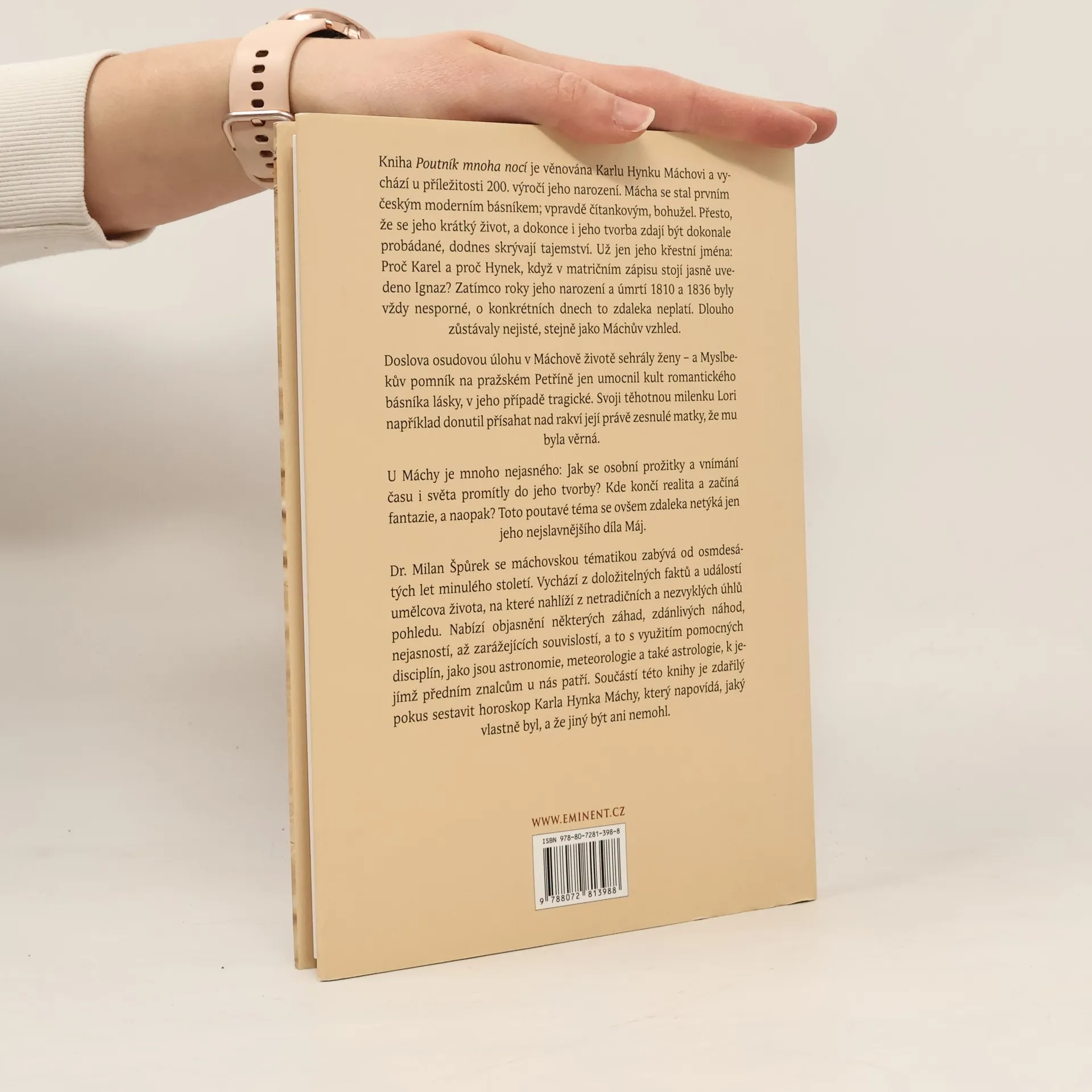 Publikace sepsaná renomovaným odborníkem, který se máchovskou tematikou zabývá řadu let, vychází při příležitosti dvoustého výročí básníkova narození. Poznáváme Máchu jako opravdového, temně romantického básníka více tváří, u kterého je dílo neoddělitelně spjato s prožitky života. Autor nás provádí prostředím, ve kterém Mácha vyrůstal a seznamuje nás s lidmi kolem něj. Ženám, které ovlivnily jeho život a ke kterým měl básník nevyvážené vztahy - v případě jeho přítelkyně Lori se projevoval až tyransky - věnoval M. Špůrek celou kapitolu. Nahlédneme též nejen do Máchova uvažování o kosmu a smrti, ale setkáme se i s jeho sny... Zmíněn je rovněž jako poutník a hledač nadčasové pravdy. Vše autor propojuje tajemným sledem událostí v čase a vytváří Máchův pravděpodobný horoskop. Kniha je doplněna fotografiemi a ilustracemi.