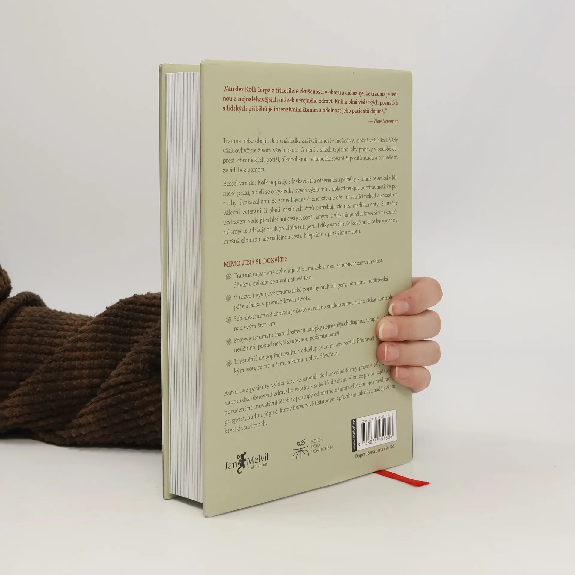 Trauma nelze obejít a jeho následky ovlivňují životy mnoha lidí, včetně vás a vašich blízkých. Trpící jedinci často nezvládají projevy jako deprese, chronické potíže, alkoholismus či osamělost bez pomoci. Autor popisuje příběhy ze své klinické praxe a sdílí výsledky výzkumů v oblasti terapie posttraumatické poruchy. Prokázal, že oběti traumatu, včetně dětí a válečných veteránů, potřebují víc než jen medikamenty. Skutečné uzdravení spočívá v hledání cesty k sobě samým a k tělu, které si uchovává otisk prožitého utrpení. Dozvíte se, že trauma negativně ovlivňuje tělo a mozek, mění schopnost prožívat radost a důvěru. Vývojová traumatická porucha je ovlivněna geny, hormony a rodičovskou péčí. Sebedestruktivní chování často vychází z touhy znovu cítit a získat kontrolu. Projevy traumatu bývají mylně diagnostikovány, a terapie je neúčinná, pokud neřeší skutečnou podstatu potíží. Trýznění lidé se oddělují od reality, což narušuje jejich identitu a schopnost důvěřovat. Autor vybízí pacienty k zapojení do různých forem práce s tělem, které pomáhají obnovit zdravý vztah k sobě i ostatním. Kniha nabízí doporučení na inovativní léčebné metody, jako jsou neurofeedback, meditace, sport, hudba, jóga či herectví, a dává naději těm, kteří trpěli.