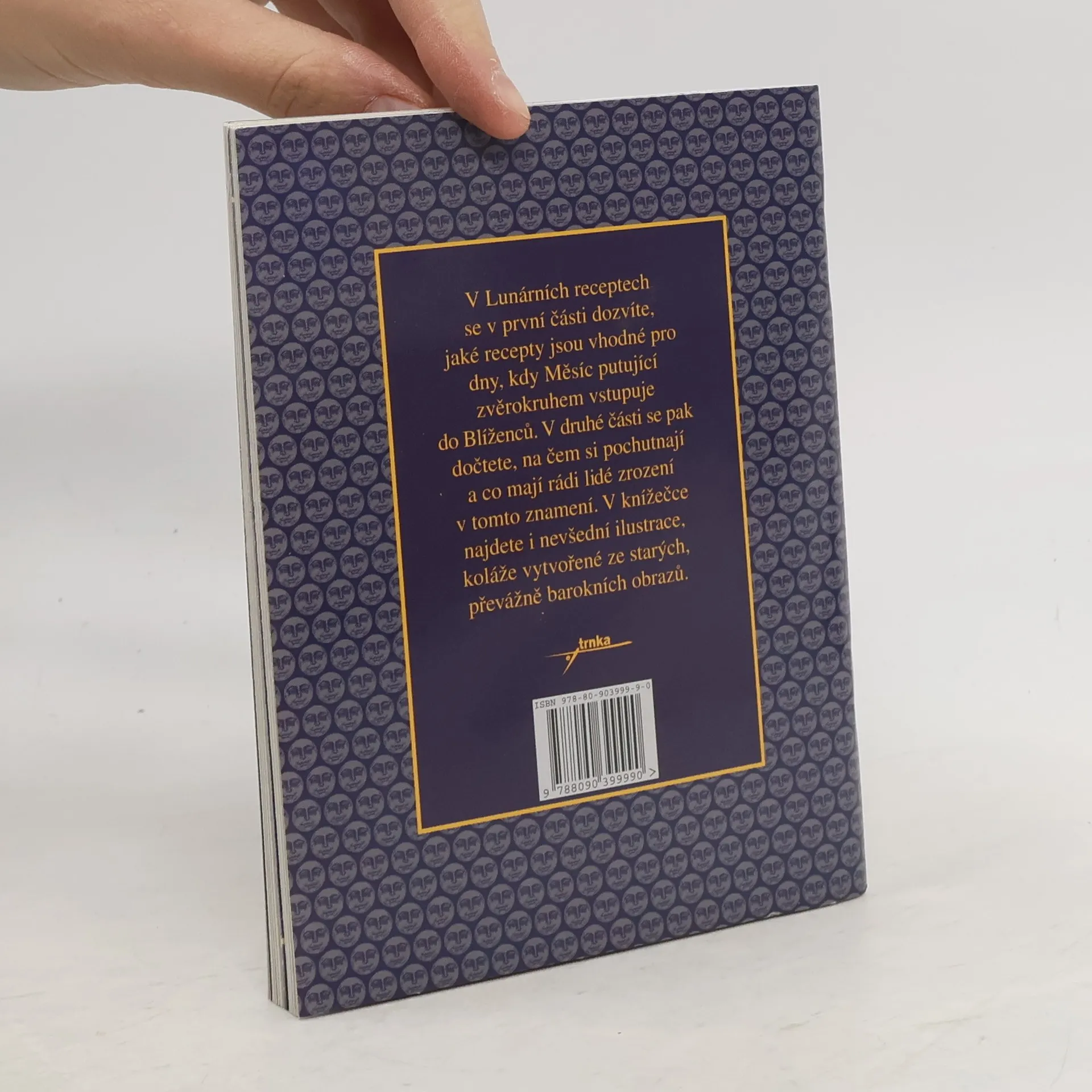 V Lunárních receptech se v první části dozvíte, jaké recepty jsou vhodné pro dny, kdy Měsíc putující zvěrokruhem vstupuje do Blíženců. V druhé části se pak dočtete, na čem si pochutnají a co mají rádi lidé zrození v tomto znamení. V knížečce najdete i nevšední ilustrace, koláže vytvořené ze starých, převážně barokních obrazů.