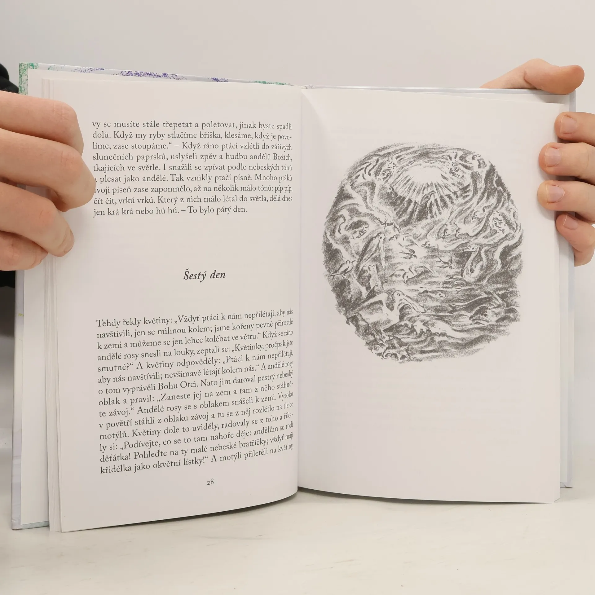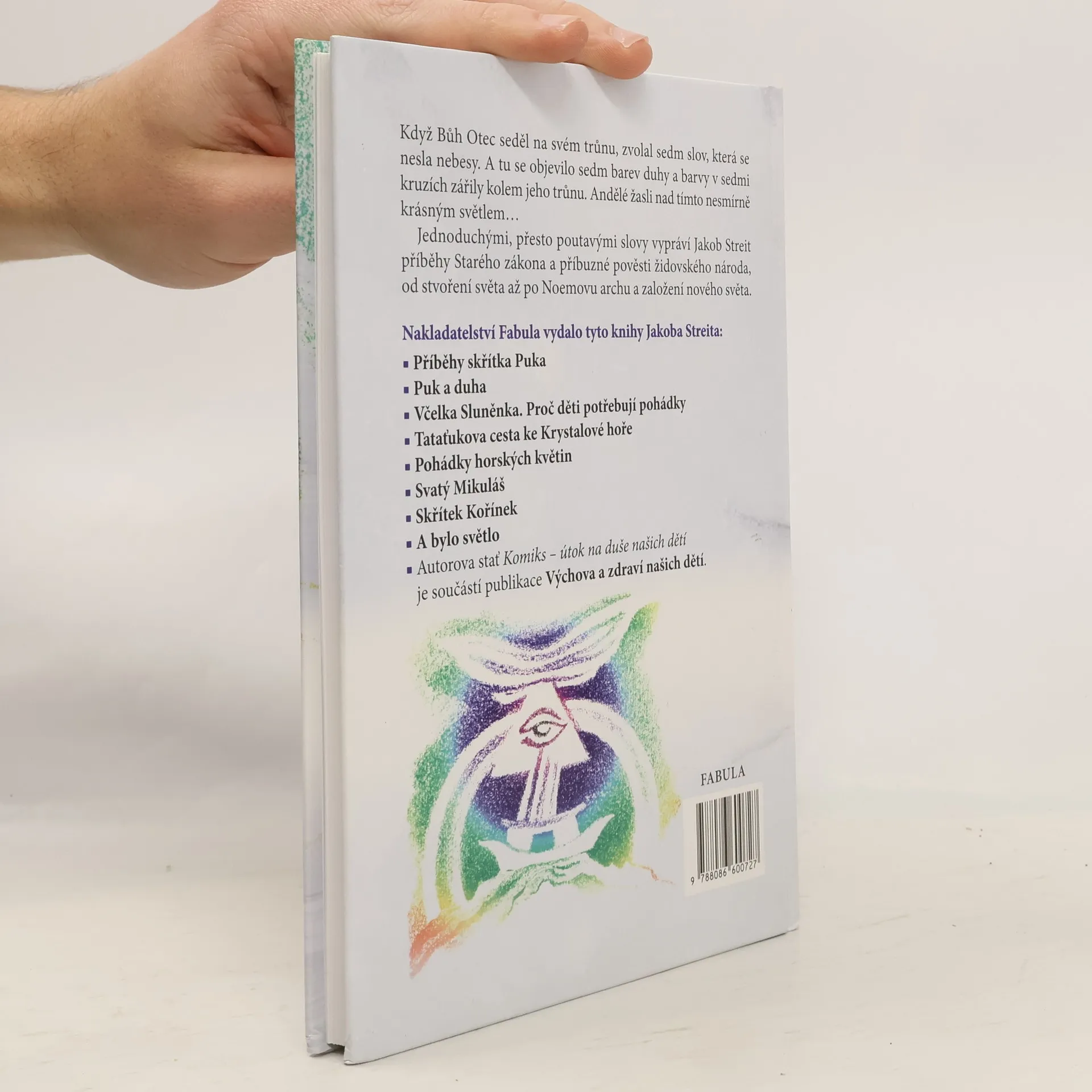 Známý švýcarský pohádkář, jehož pohádkové příběhy si oblíbily děti na celém světě, vypráví v jednoduchých, ale poutavých obrazech biblické obrazy o stvoření světa a další související příběhy. Ilustrovala Asja Turgeněvová. Když Bůh Otec seděl na svém trůnu, zvolal sedm slov, která se nesla nebesy. A tu se objevilo sedm barev duhy a barvy v sedmi kruzích zářily kolem jeho trůnu. Andělé žasli nad tímto nesmírně krásným světem