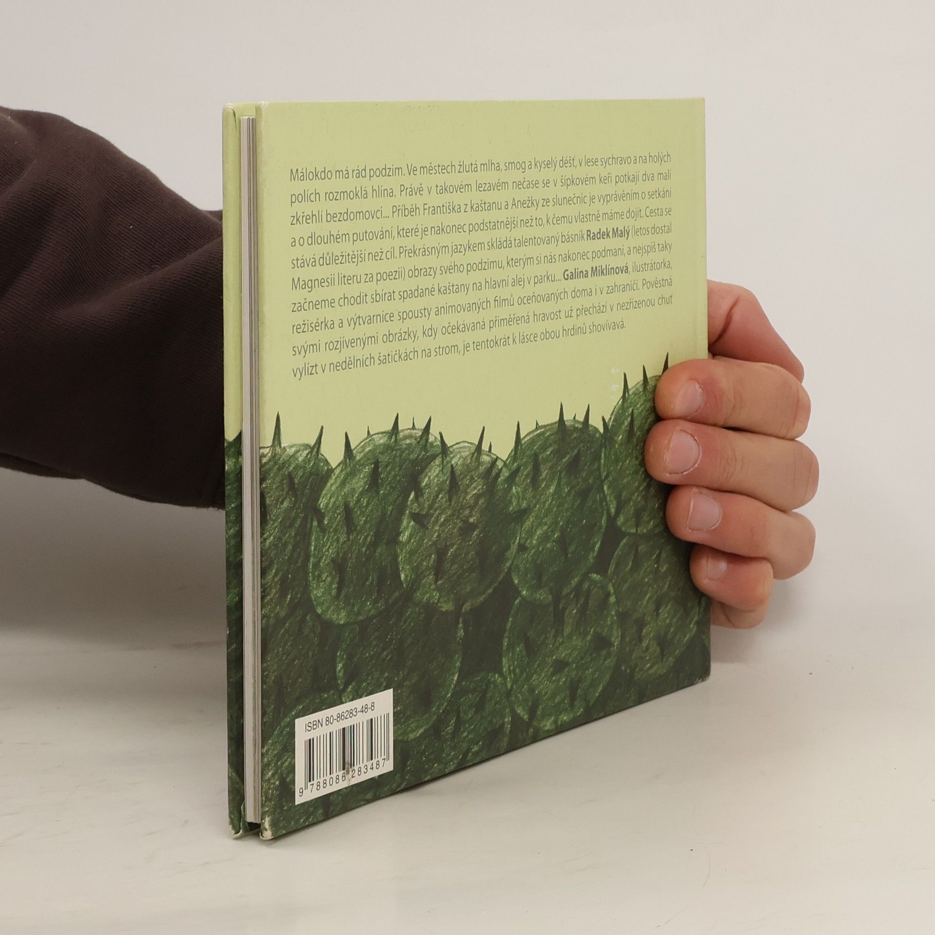 Lyrický pohádkový příběh holčičky ze slunečnice a panáčka z kaštanu, o jejich soužití, rozchodu a opětovném shledání. Pro čtenáře kolem 9–10 let. Jedné noci uprostřed září se na jednom vesnickém nádraží vyloupne z naprasklé kaštanové slupky František. Přibližně v tu samou dobu se na poli, nedaleko nádraží, ze slupky slunečnicového semínka vylíhne Anežka. Tihle dva se zanedlouho setkají a rozhodnou se, že dál budou putovat spolu. Ve vlaku narazí na nepříjemnou cestující, která je považuje za myši, podívají se na zámek, odkud je ale vyžene zahradník a nakonec najdou opuštěný krtčí domeček, ve kterém se rozhodnou zůstat. Zatímco se Anežka věnuje vaření, František píše parodii na rytířský román. Jenomže jednoho listopadového dne se nepohodnou… Místy napínavý, místy téměř snový text je doprovázen ilustracemi Galiny Miklínové.
