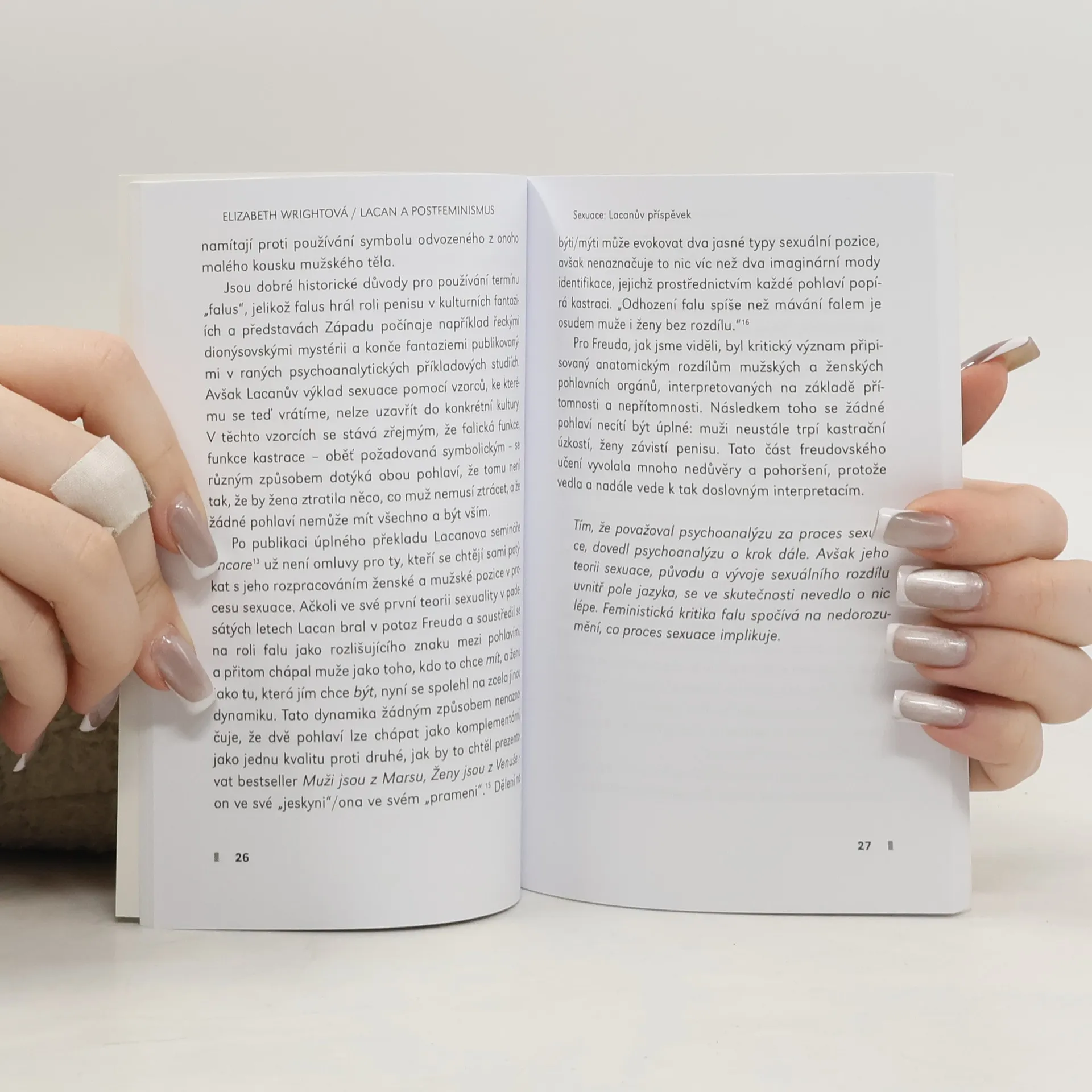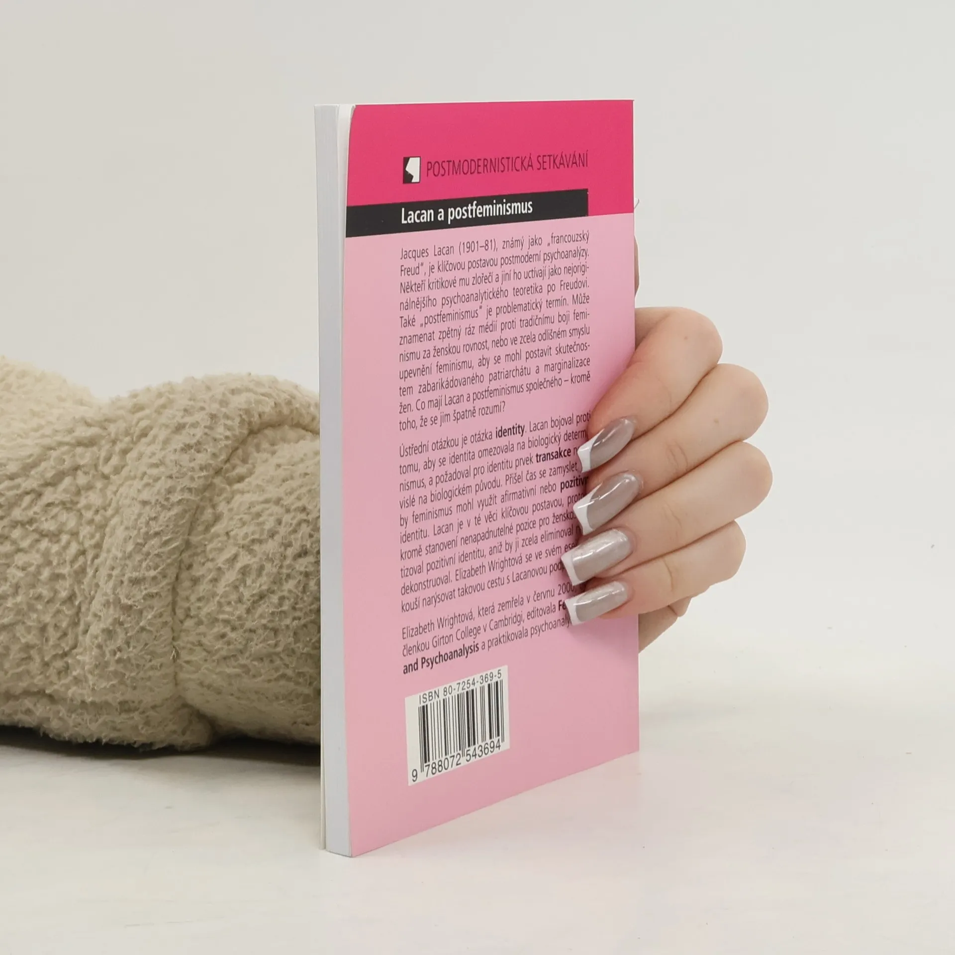 Studie srovnává pojetí identity v díle významného francouzského psychoanalytika a v postfeministickém hnutí. Lacan inicioval mohutnou kritiku stabilní identity člověka, avšak současně ji neodstranil. Jeho psychoanalytický systém se nemohl zcela zbavit stabilní identity, neboť se opírá o nevyhnutelný vztah k symbolickému, což je pokus subjektu udržet v sobě skutečnou současnost. Postfeminismus využívá Lacanovy kritiky pozitivní identity. Francouzský psychoterapeut tak sehrál klíčovou roli v ideovém směřování postfeministického hnutí, poněvadž kritizoval tzv. pozitivní identitu a vymezil novou podstatu ženskosti. Brožura pojímá Lacanovu teoretickou koncepci jako konstitutivní prvek idejí postfeminismu.