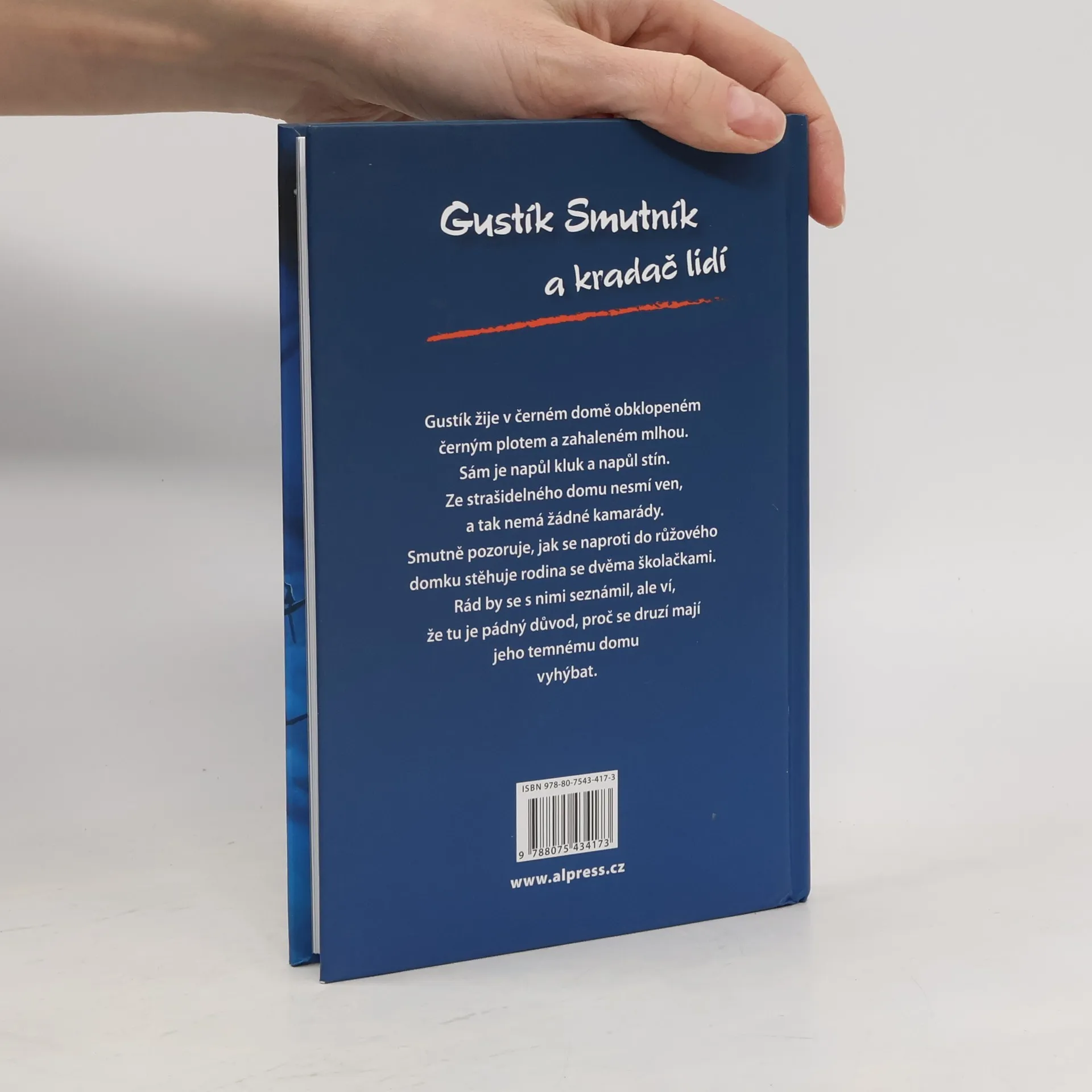 Gustík žije v černém domě obklopeném černým plotem a zahaleném mlhou. Sám je napůl kluk a napůl stín. Strašidelný dům nesmí opustit, a tak nemá žádné kamarády. Smutně pozoruje, jak se naproti do růžového domku stěhuje rodina se dvěma školačkami. Rád by se s nimi seznámil, ale ví, že existuje pádný důvod, proč se jeho pochmurnému domu vyhýbat.