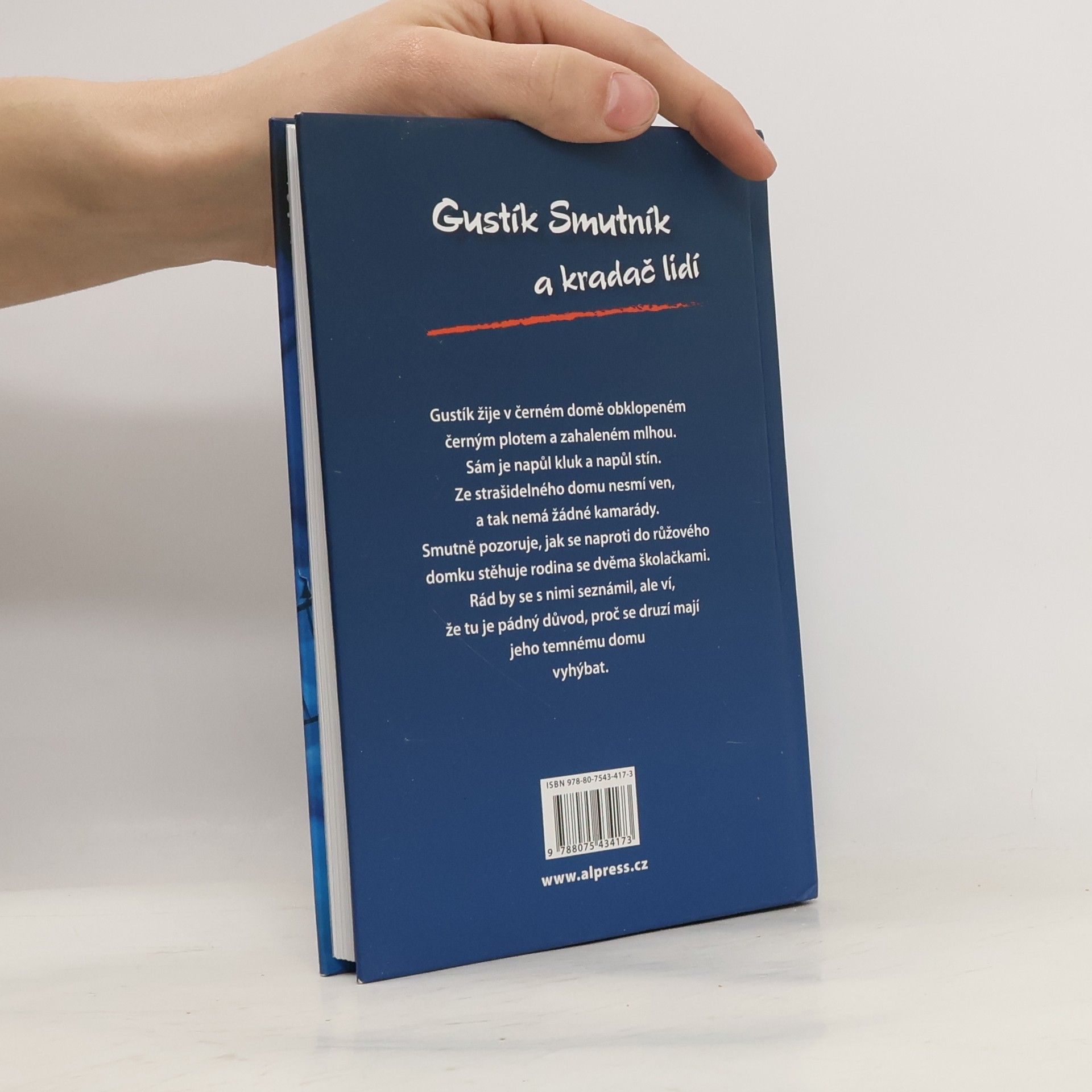 Gustík žije v černém domě obklopeném černým plotem a zahaleném mlhou. Sám je napůl kluk a napůl stín. Strašidelný dům nesmí opustit, a tak nemá žádné kamarády. Smutně pozoruje, jak se naproti do růžového domku stěhuje rodina se dvěma školačkami. Rád by se s nimi seznámil, ale ví, že existuje pádný důvod, proč se jeho pochmurnému domu vyhýbat.