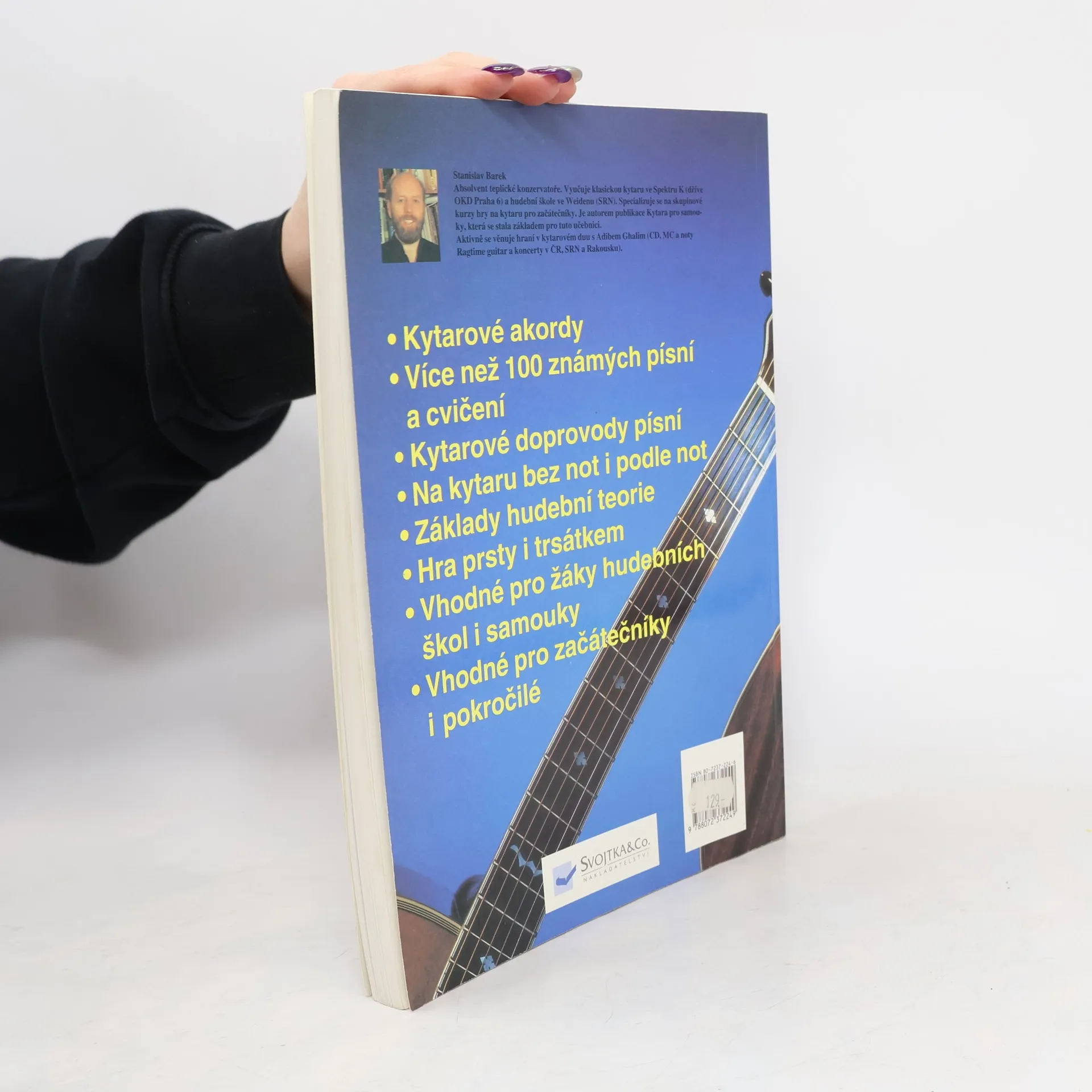 Popisuje základy hry na kytaru až k úplnému zvládnutí nástroje. Více než 100 textu nejznámnejších. Základy hudební teorie. Vhodná pro samouky i žáky hudebních škol.