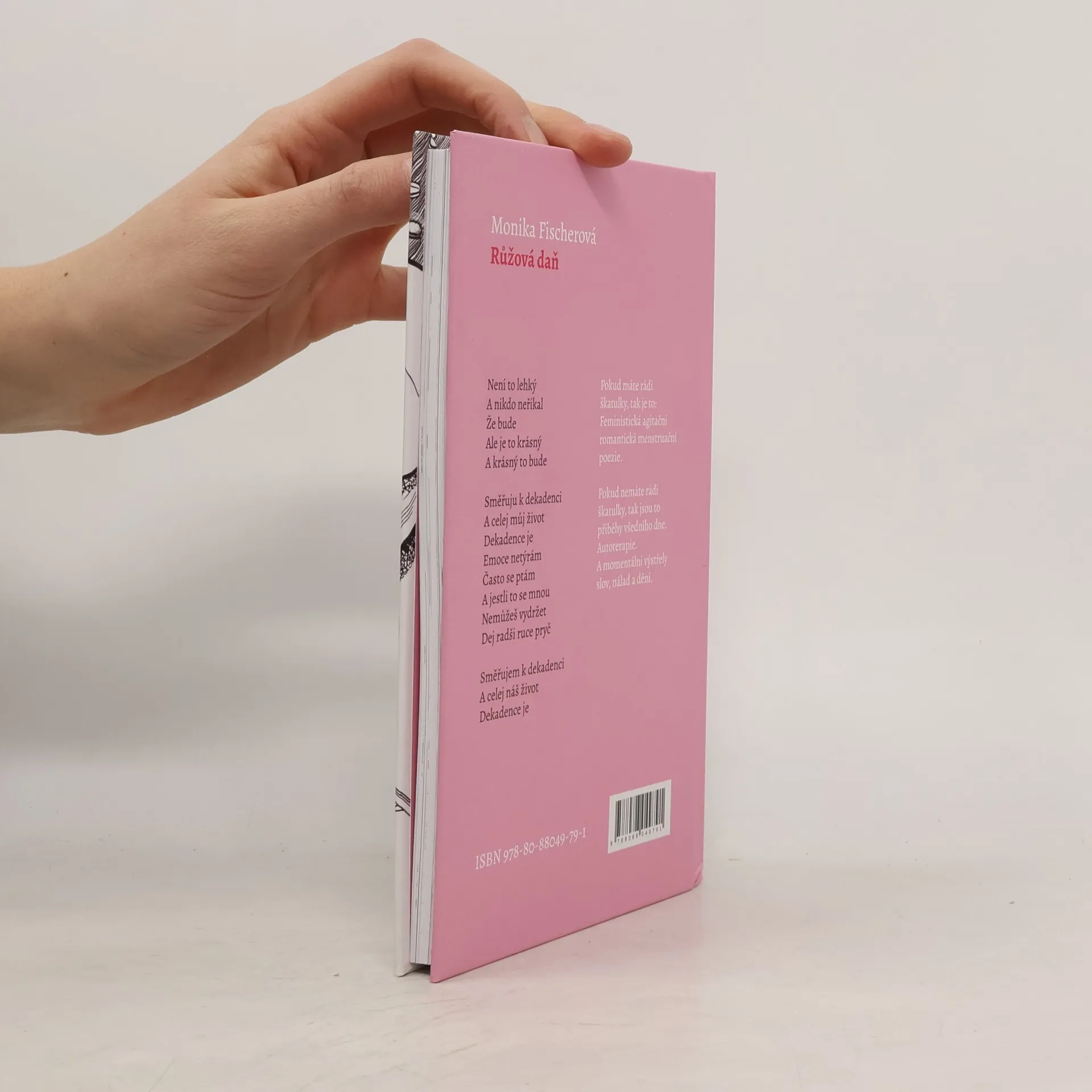 Pokud máte rádi škatulky, tak je to: Feministická agitační romantická menstruační poezie. Pokud nemáte rádi škatulky, tak jsou to příběhy všedního dne. Autoterapie. A momentální výstřely slov, nálad a dění.