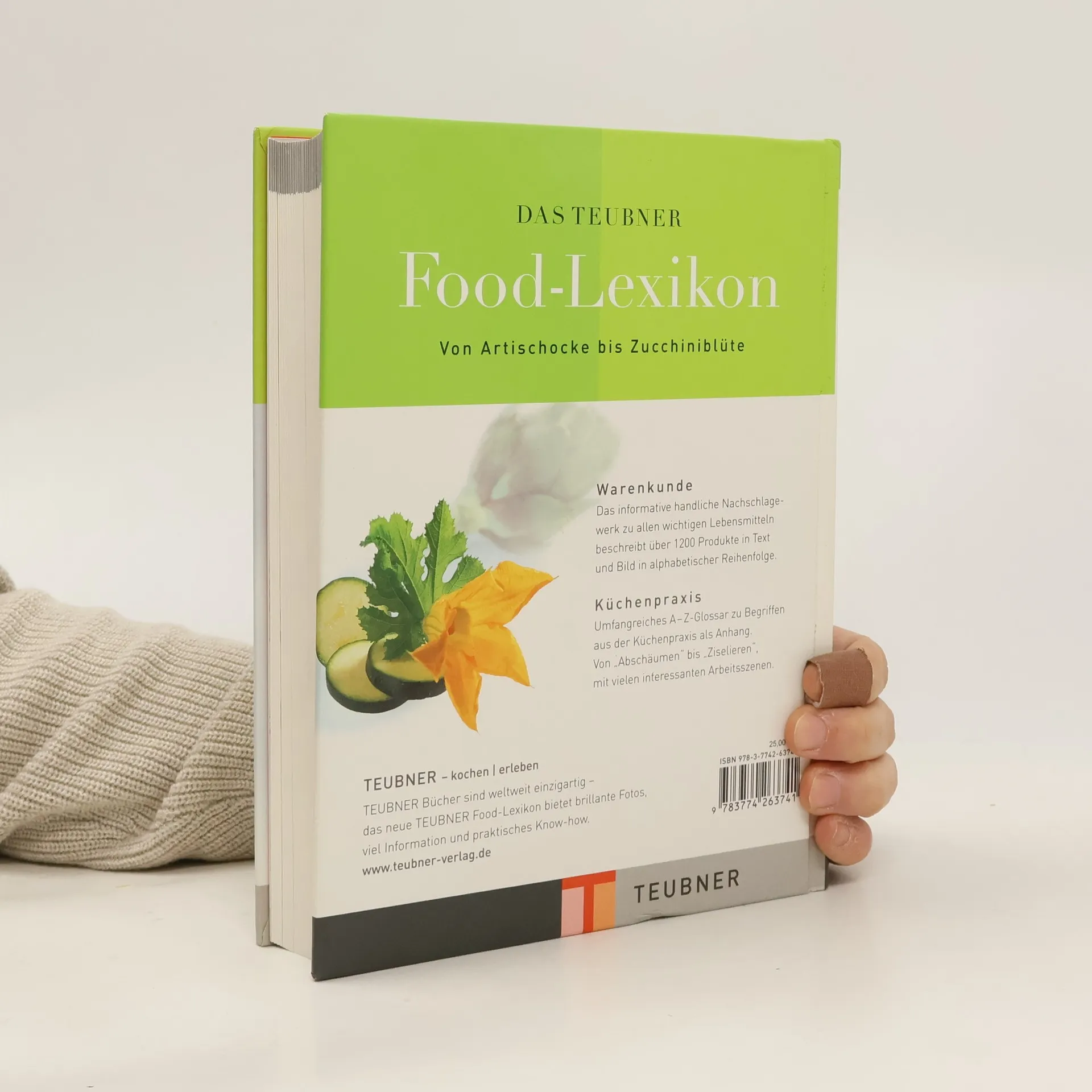 Das TEUBNER Food-Lexikonl bietet in einem umfangreichen, praktisch-kleinformatigen Band ca. 1200 relevante Lebensmittel und Produkte in alphabetischer Reihenfolge in Text und Bild. Ein ausführliches, farblich gekennzeichnetes Glossar am Ende des Buches erklärt zudem, ebenfalls alphabetisch geordnet, die wichtigsten Küchenbegriffe von „Ablöschen“ bis „Ziselieren“. Einige dieser Begriffe werden ergänzend zur Texterklärung in einzelnen Arbeitsszenen auch bildlich dargestellt. Die Bandbreite der beschriebenen Produkte erstreckt sich über alle wichtigen Produktgruppen: Gemüse, Obst, Eier, Milch, Käse, Fisch, Meeresfrüchte, Fleisch, Geflügel, Wild, Schinken, Wurst, Teigwaren, Reis, Kräuter, Gewürze. Das TEUBNER Food-Lexikon ist somit ein unentbehrliches Nachschlagewerk im praktischen kleinen Format, das in jeder Küche stehen sollte.
