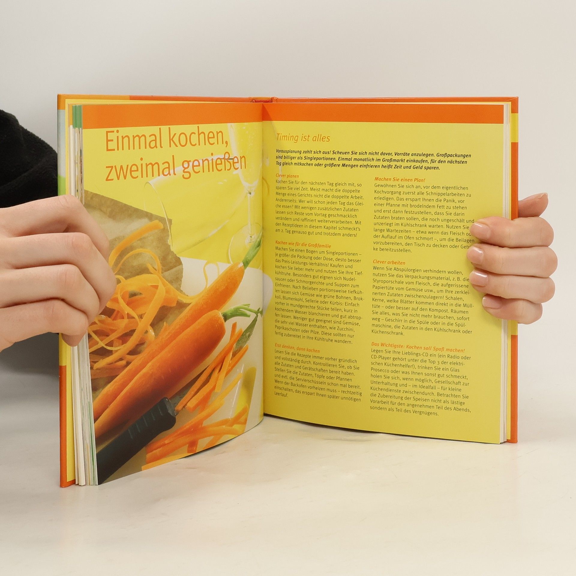 Spätestens seit dem Werbeslogan Geiz ist geil wissen wir, dass Sparen nicht nur in ist, sondern sogar richtig Spaß machen kann. Und mit den über 100 Rezepten unter 2 _ pro Person muß auch niemand den Gürtel enger schnallen, sondern kann Rezepte genießen, die schnell, variantenreich, mal für zwei oder sogar für Freunde und Gäste gedacht sind. Auf Abwechslung und Kreativität wird nicht verzichtet. So gibt es Vitaminsalat mit Knuspertofu, Puteninvoltini, Artischocken mit Kräuterdip und als Dessert Weisse Mousse mit Ingwer. Damit das Sparen noch mehr Freude macht, liefern die Info-Baukästen nützliche Tipps zum Verfeinern von Fertigprodukten, ein Pannenhilfe-ABC, eine Warenkunde für Sparfüchse und sechs schnelle Beilagen, die weniger als 50 Cent kosten.