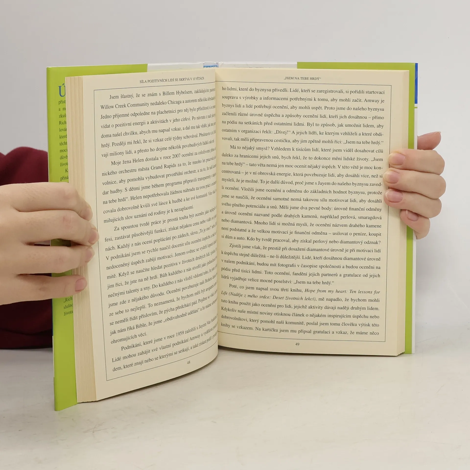 Kniha přibližuje čtenářům a učí je 10 jednoduchých vět, jejichž komunikováním výrazně zlepší nejen život svůj ale i životy lidí, se kterými se setkávají. Slavný světový podnikatel, spisovatel, miliardář - Rich DeVos, předává své životní zkušenosti v tuctech vzpomínek, v nichž právě komunikování těchto deseti vět rozhodlo o významných pozitivních změnách a to mnohdy v životech až několika milionů lidí. Autor knihy, pan Rich DeVos, patří mězi 200 nějbohatších mužů planety (Forbes 2010). V ČR vyšla již jedna jeho kniha - Soucitný kapitalismus. Je spoluzakladatelem přední společnosti přímého prodeje - Amway Global a majitelem basketbalového klubu Orlando Magic. V USA lze jeho jméno nalézt v názvech obchodních tříd, univerzitních kampusů, nemocnic i konferenčního dómu. Nedávno obdržel cenu Normana Vincenta Peala za příkladný pozitivní život.