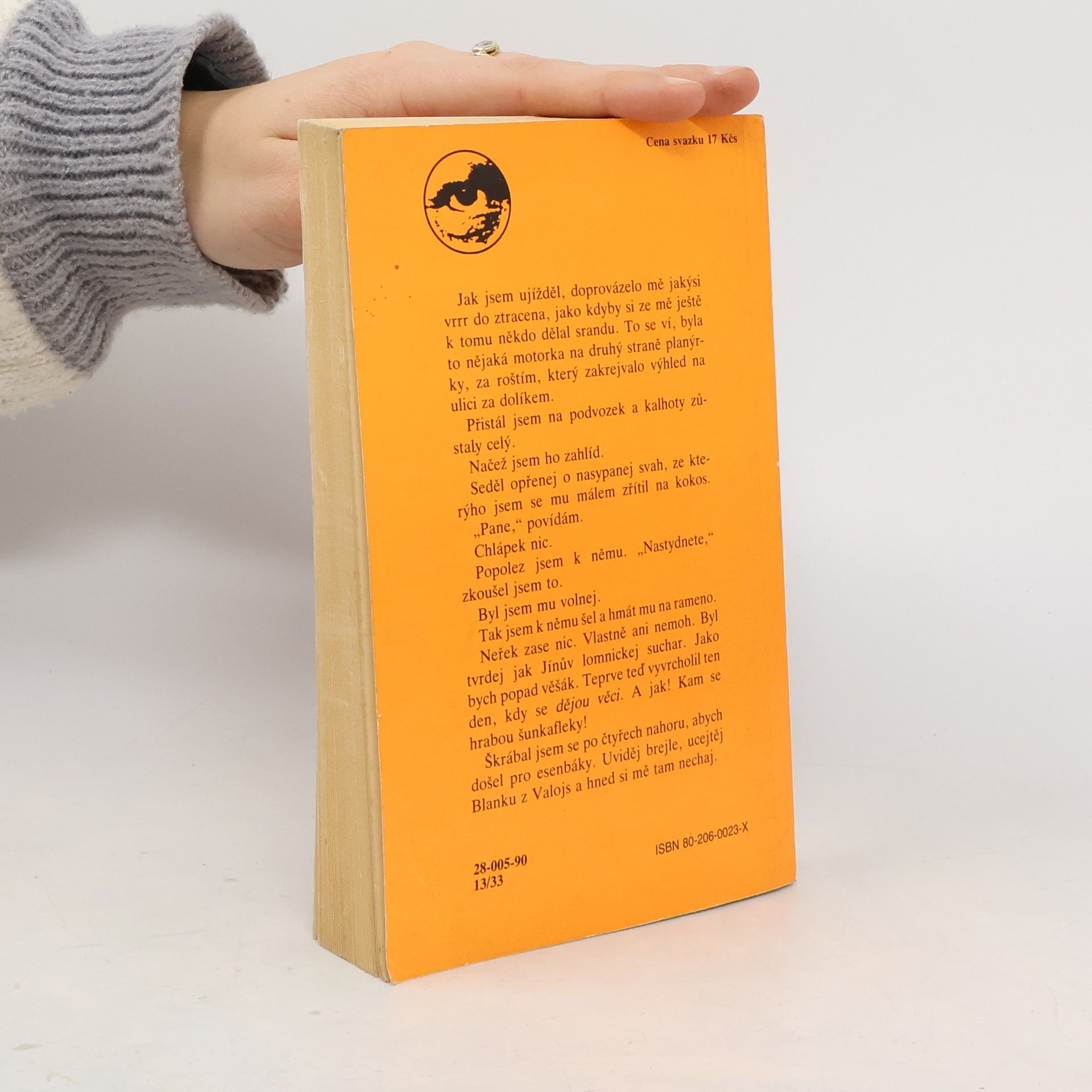 Vydání Čenže a Smrti komára (4. a 5. Finkovka) z osmdesátých let, které vyšlo pod společným názvem Čenž se smrtí. Ukázka: Jak jsem ujížděl, provázelo mě jakýsi vrrr do ztracena, jako kdyby si ze mě ještě k tomu někdo dělal srandu. To se ví, byla to nějaká motorka na druhý straně planýrky, za roštím, který zakrejvalo výhled na ulici za dolíkem. Přistál jsem na podvozek a kalhoty zůstaly celý. Načež jsem ho zahlíd. Seděl opřenej o nasypanej svah, ze kterýho jsem se mu málem zřítil na kokos. „Pane,“ povídám. Chlápek nic. Popolez jsem k němu. ,,Nastydnete,“ zkoušel jsem to. Byl jsem mu volnej. Tak jsem k němu šel a hmát mu na rameno. Neřek zase nic. Vlastně ani nemoh. Byl tvrdej jak Jínův lomnickej suchar. Jako bych popad věšák. Teprve teď vyvrcholil ten den, kdy se dějou věci. A jak! Kam se hrabou šunkafleky! Škrábal jsem se po čtyřech nahoru, abych došel pro esenbáky. Uviděj brejele, ucejtěj Blanku z Valojs a hned si mě tam nechaj.