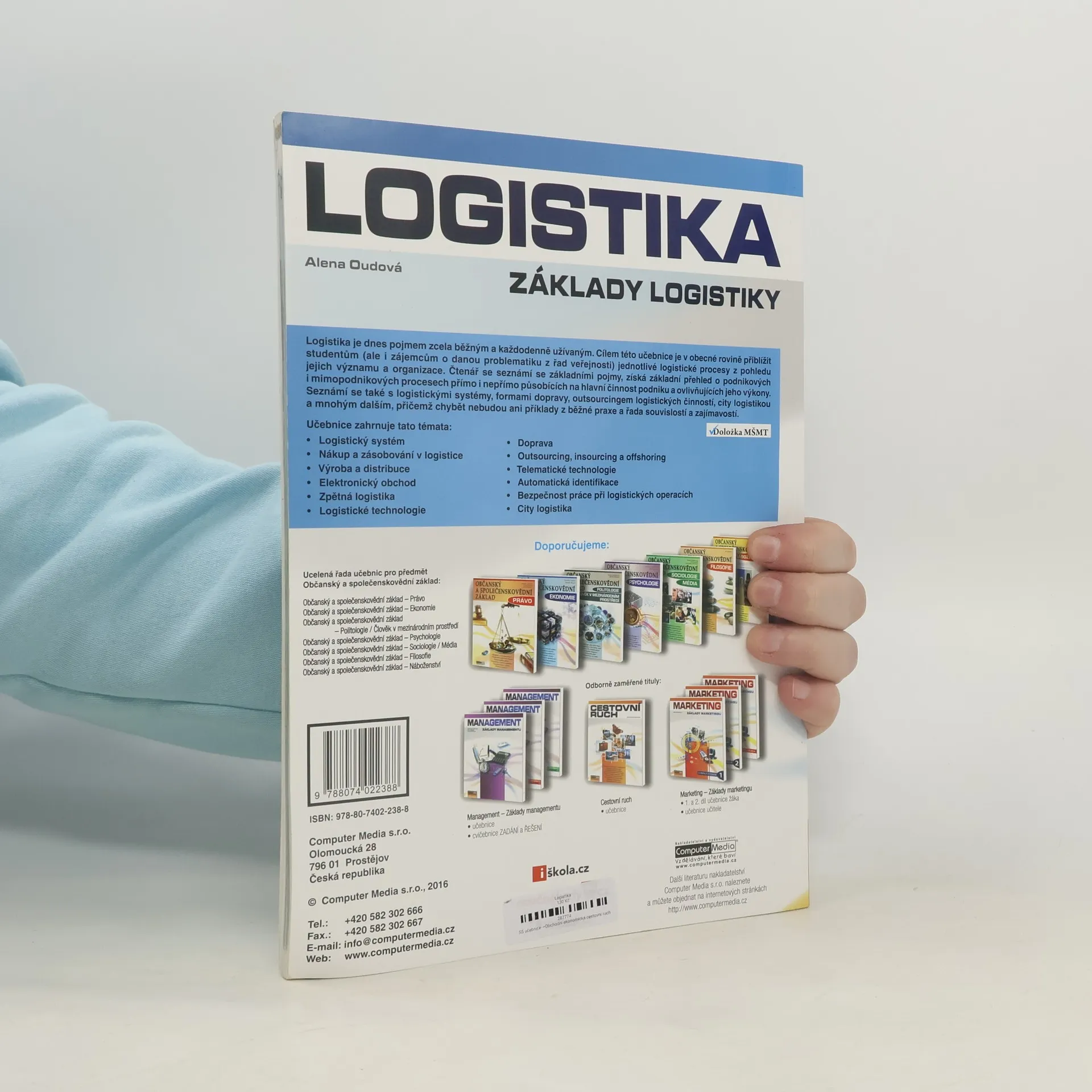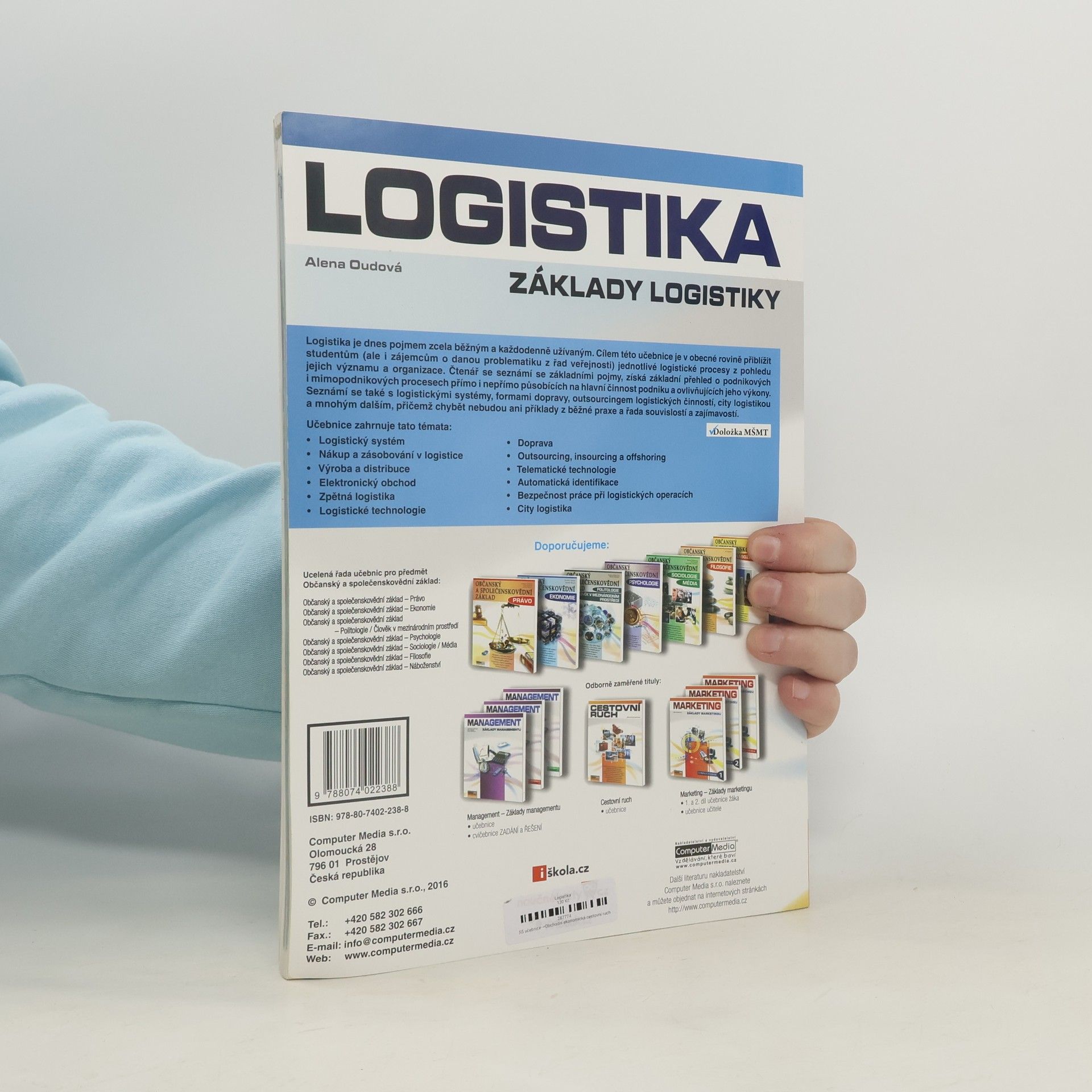 Cílem této učebnice je v obecné rovině přiblížit studentům i zájemcům o danou problematiku z řad veřejnosti jednotlivé logistické procesy z pohledu jejich významu i organizace. Učebnice je jakýmsi průvodcem logistickým světem složeným z aktivních a pasivních prvků ovlivňovaným materiálovými i informačními toky s přihlédnutím k ekonomické stránce věci.Čtenář se seznámí se základními pojmy, získá základní přehled o podnikových i mimopodnikových procesech přímo i nepřímo působící na hlavní činnost podniku a ovlivňující jeho výkony, o logistických systémech, outsourcingu logistických činností, city logistice a mnohém dalším, přičemž chybět nebudou ani příklady z běžné praxe a řada souvislostí a zajímavostí.Učebnice je celobarevná, obsahuje velké množství grafiky, obrázků, tipů, triků, souvislostí a mezipředmětových vazeb. Autorkou je Alena Lochmannová, dříve Oudová.