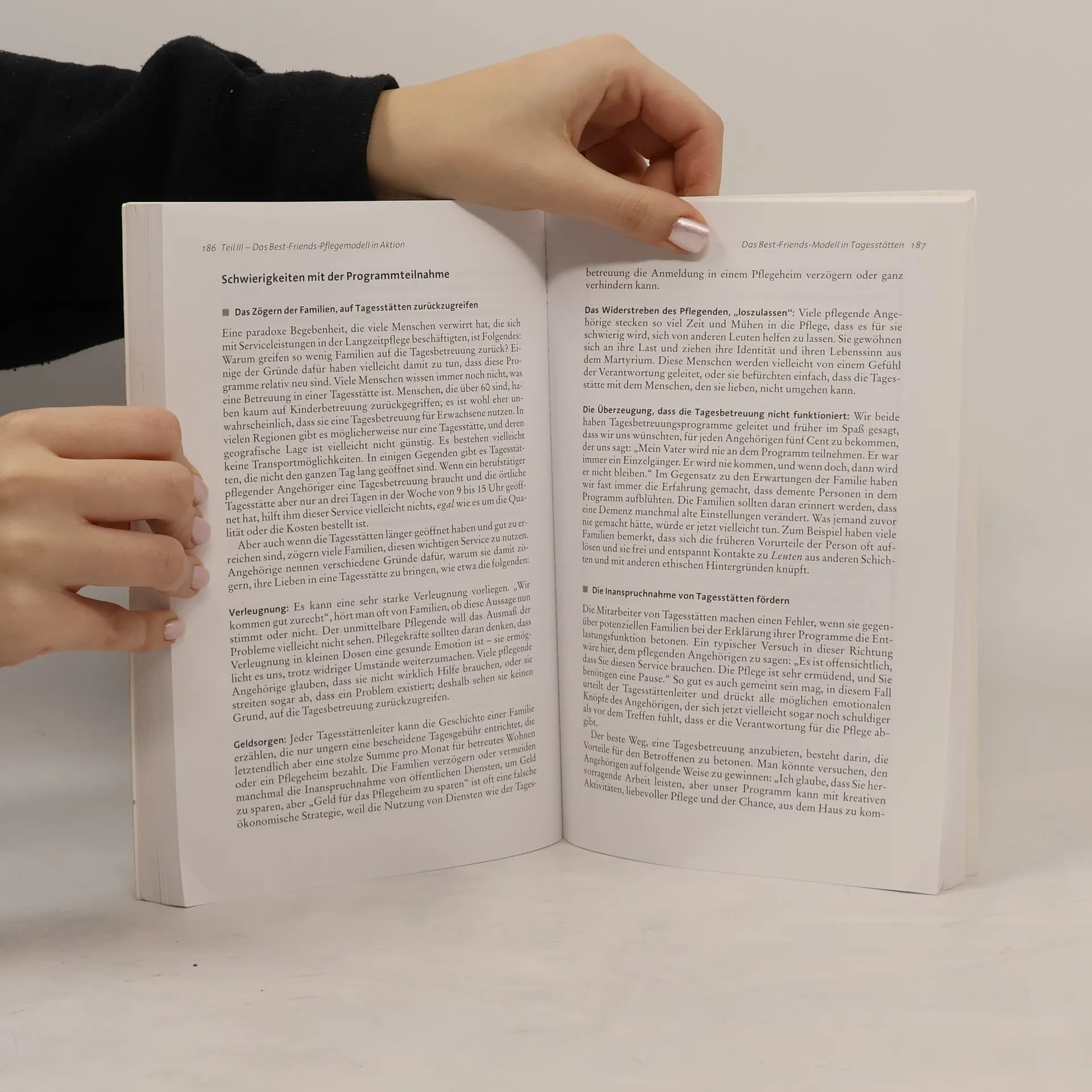 Wenn der vertraute Boden alltäglicher Kenntnisse brüchig wird, reagieren Menschen mit beginnender Demenz oft unsicher, ängstlich oder zornig. Die Pflege eines verwirrten Elternteils oder Partners kann zermürbend sein, und auch professionelle Pflegekräfte stoßen im hektischen Alltag schnell an ihre Grenzen. Da Medikamente noch keine Heilung bieten, sind psychosoziale Maßnahmen entscheidend, um die Lebensqualität für Betroffene und Pflegende zu verbessern. Das Buch gibt Angehörigen und Pflegenden neuen Mut und zeigt, wie man die Lebensqualität steigern und mit schwierigen Verhaltensweisen umgehen kann. Die Autoren vermitteln eine Grundhaltung von Vertrauen und Optimismus und lehren, wie man trotz fortschreitender Persönlichkeitsveränderungen eine Vertrauensperson bleibt, die im Alltag unterstützt und ermutigt. Anhand von Fallbeispielen wird aufgezeigt, wie man Demenz-Patienten in Trauer, Angst oder Wut beistehen kann. Zudem werden zahlreiche Tipps gegeben, um zentrale Lebensthemen zu identifizieren und in der Vertrauensbeziehung fruchtbar zu machen. Die Autoren, erfahren in der Alzheimer-Forschung und -Pflege, bieten wertvolle Einblicke und Anleitungen für die Betreuung von Demenzkranken.