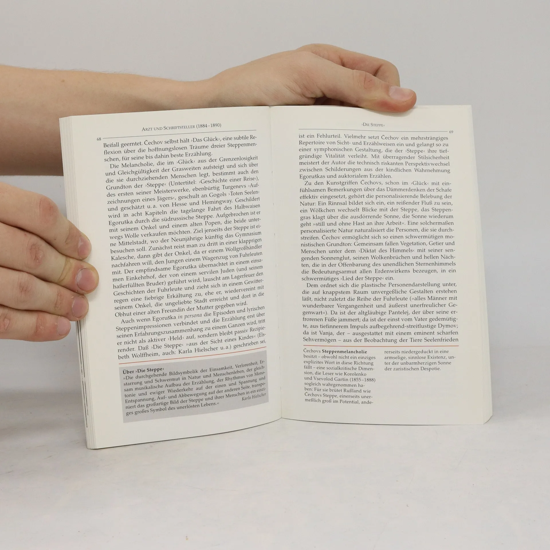 Anton Tschechow (1860 - 1904) begann schon während seines Medizinstudiums zu schreiben, um Geld zu verdienen. Auch als praktizierender Arzt war er zugleich Schriftsteller und verfasste Erzählungen, humoristische Texte und Dramen, mit wachsendem, auch internationalem Erfolg.§§Vor allem in seinen Theaterstücken erweist sich Tschechow als Avantgardist. Es gelingt ihm, mit sparsamsten Mitteln und genauer psychologischer Einfühlung die innere Befindlichkeit des modernen, nach dem Verlust der traditionellen Werte entwurzelten Menschen deutlich zu machen. Dramen wie "Der Kirschgarten" oder "Die drei Schwestern", in denen verunsicherte, zweifelnde Menschen nach Selbstverwirklichung und Lebenssinn suchen, haben bis heute nichts an Aktualität verloren.§§"Es wären seine Werke, die ich auf eine Reise zu einem anderen Planeten mitnehmen würde." (Vladimir Nabokov)