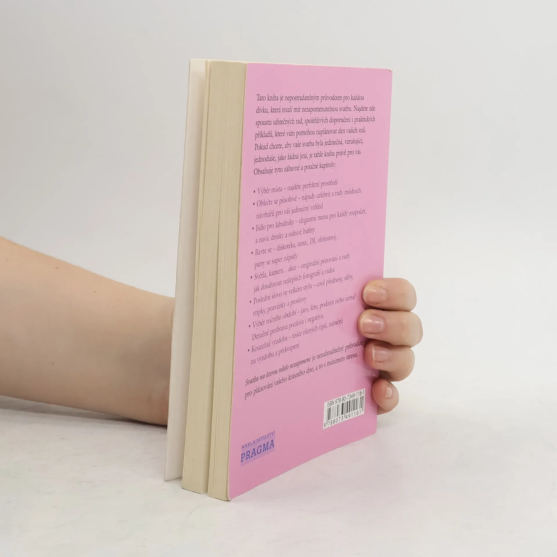 Chcete, aby se vaše svatba stala jedinečnou, nezapomenutelnou a odlišnou od všech ostatních? V tom případě je tato kniha ideální publikací právě pro vás. Je plná výborných nápadů, osvědčených rad a skutečných příběhů, které jsou založeny na vlastní zkušenosti autorky nebo zkušenostech dalších vdaných žen. I přesto že nemáte několikamilionový rozpočet, můžete si dovolit uspořádat svatbu ve stylu světoznámých celebrit. Kniha vám pomůže s výběrem ideálního místa pro vaši svatbu, oslavu i líbánky, ideálního ročního období, působivého oblečení po vzoru nejznámějších světových návrhářů, jídla, zábavného programu na oslavu, poradí jak dosáhnout těch nejkrásnějších fotografií, proslovů a pomůže s rozhodováním se, jaká výzdoba bude pro váš svatební den tou nejlepší.