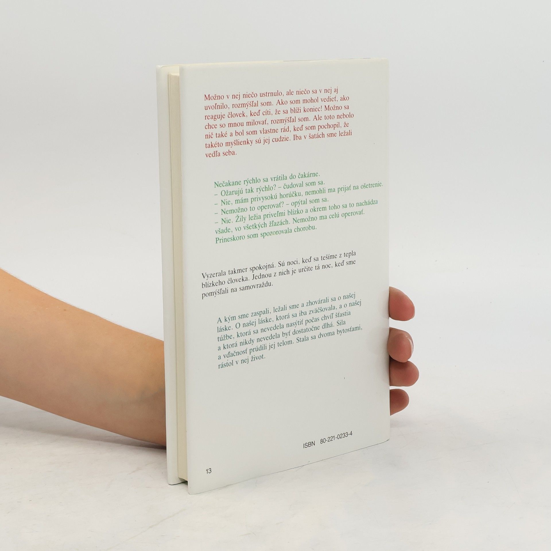 Román ,je akási literárna reportáž ,správa o krátkom romániku lásky a manželstva, no najmä o smrteľnej, na pohľad nevyliečiteľnej chorobe.