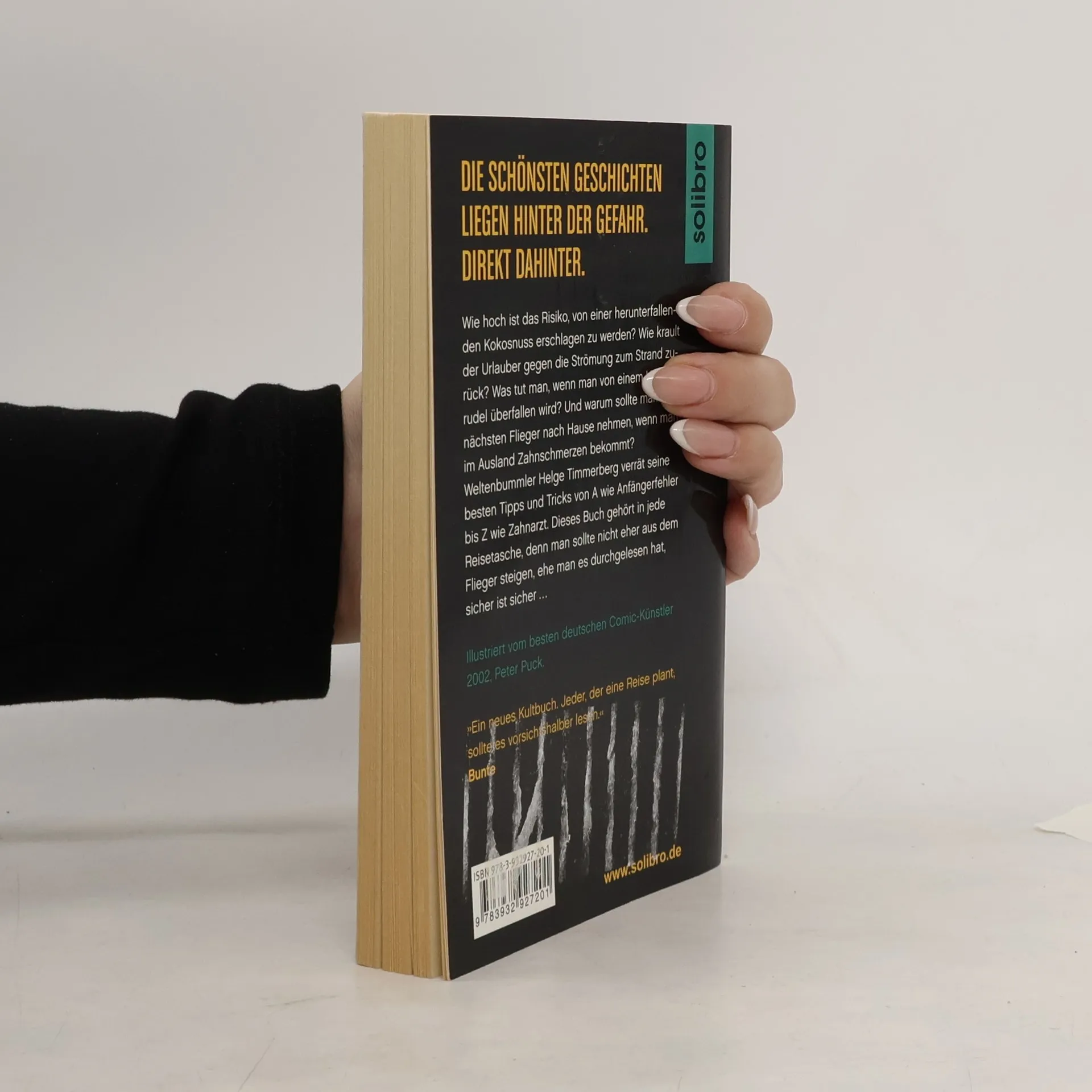 Die schönsten Geschichten liegen hinter der Gefahr. Direkt dahinter. Wie hoch ist das Risiko, von einer herunterfallenden Kokosnuss erschlagen zu werden? Wie krault der Urlauber gegen die Strömung zum Strand zurück? Was tut man, wenn man von einem Hunderudel überfallen wird? Und warum sollte man den nächsten Flieger nach Hause nehmen, wenn man im Ausland Zahnschmerzen bekommt? Weltenbummler Helge Timmerberg verrät seine besten Tipps und Tricks von A wie Anfängerfehler bis Z wie Zahnarzt. Dieses Buch gehört in jede Reisetasche, denn man sollte nicht eher aus dem Flieger steigen, ehe man es durchgelesen hat, sicher ist sicher. Illustriert vom besten deutschen Comic-Künstler 2002, Peter Puck.