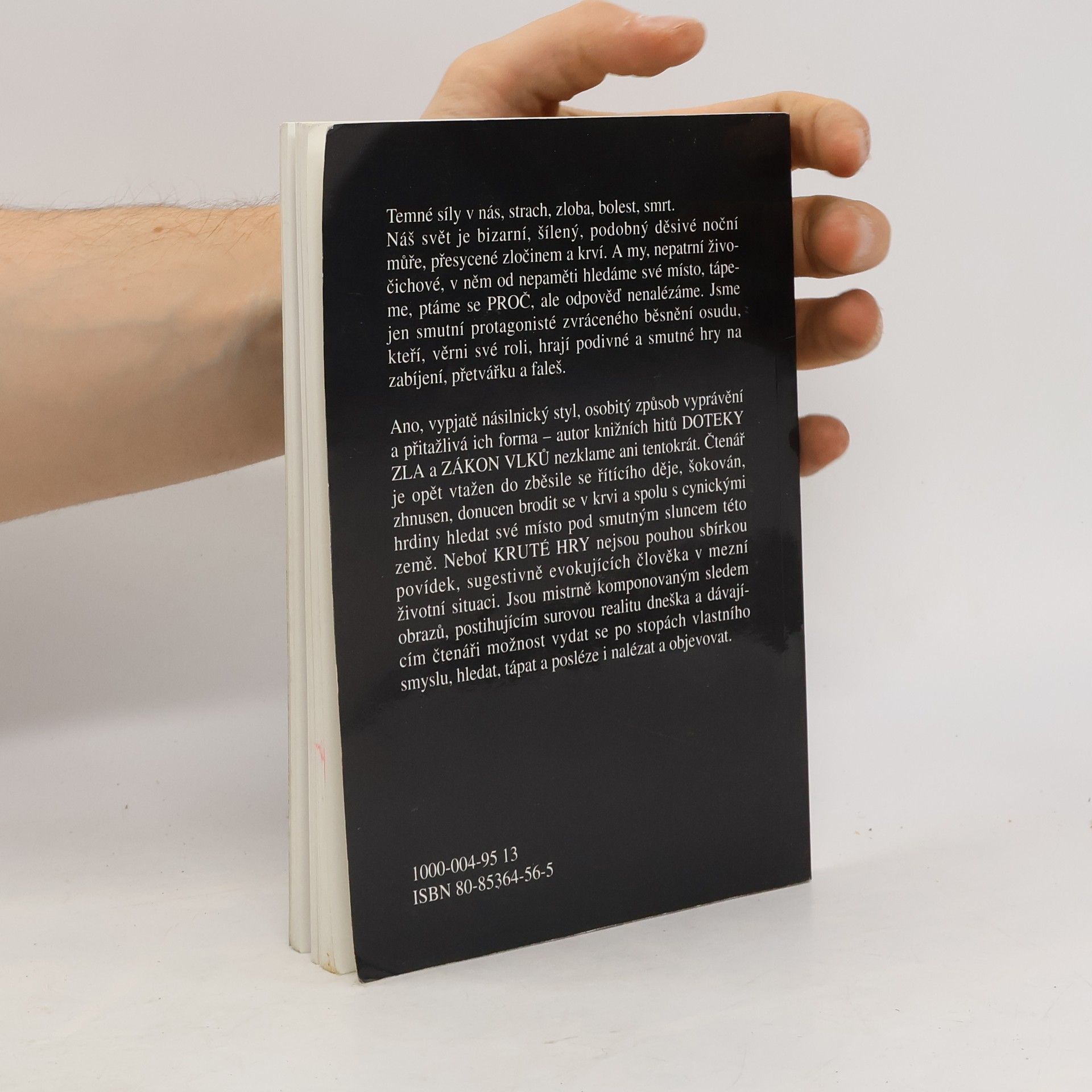 Temné síly v nás, strach, zloba, bolest, smrt. Náše svět je bizarní, šílený, pdoobný děsivé noční můře, přesycené zločinem a krví. A my, nepatrní živočichové, v něm od nepaměti hledáme své místo, tápeme, ptáme se PROČ, ale odpověď nenalézáme. Jsme jen smutní protagonisté zvráceného běsnění osudu, kteří, věrni své roli, hrají podivné a smutné hry na zabíjení, přetvářku a faleš. Ano, vypjatě násilnický styl, osobitý způsob vyprávění a přitažlivá ich forma – autor knižních hitů „Doteky zla“ a „Zákon vlků“ nezklame ani tentokrát. Čtenář je opět vtažen do zběsile se řítícího děje, šokován, zhnusen, donucen brodit se v krvi a spolu s cynickými hrdiny hledat své místo pod smutným sluncem této země. Neboť „Kruté hry“ nejsou pouhou sbírkou povídek, sugestivně evokujících člověka v mezní životní situaci. Jsou mistrně komponovaným sledem obrazů, postihujícím surovou realitu dneška a dávajícím čtenáři možnost vydat se po stopách vlastního smyslu, hledat, tápat a posléze i nalézat a objevovat.
